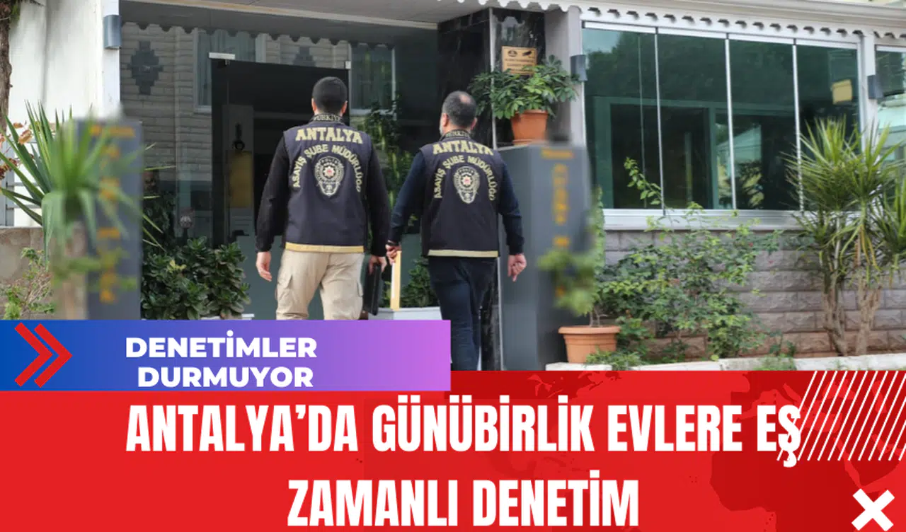 Antalya Emniyet Müdürlüğü, genel asayiş ve kamu düzeninin devamını sağlamak, genel güvenlik ve genel sağlık açısından risk teşkil eden unsurların engellenmesi, suça karışmış kişilerin yakalanması ve kayıt dışı ekonomi ile mücadele etmek amacıyla, 06.01.2024 tarihinde il genelinde faaliyet gösteren günübirlik kiralanan evlere yönelik eş zamanlı denetim gerçekleştirdi.