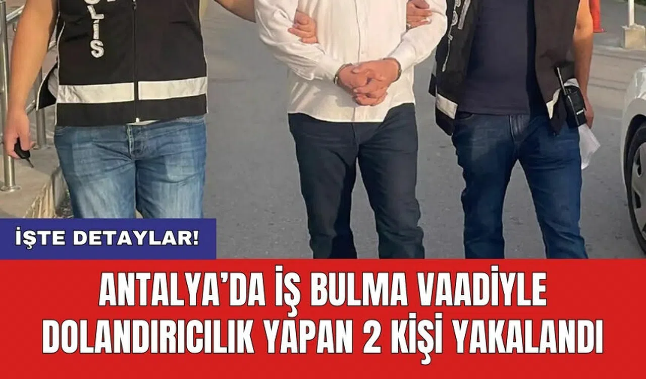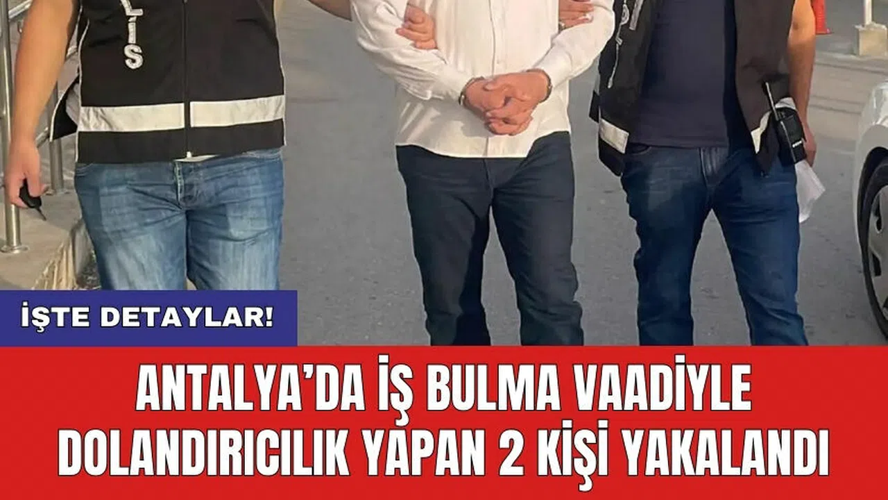 Antalya Cumhuriyet Başsavcılığının talimatları doğrultusunda, Asayiş Şube Müdürlüğü Dolandırıcılık Büro Amirliği görevlilerince yapılan çalışmalarda; Antalya’da faaliyet gösteren bir firma çerçevesinde, Avrupa ülkelerinde iş bulma ve yurt dışına vize alma vaadiyle toplam 56 ayrı kişiden yaklaşık 3 milyon 500 bin TL alan N.G ve R.S. isimli şahıslar yakalandı. Yapılan aramada; suç unsuru olduğu değerlendirilen cep telefonları, sim kartları ve dijital materyaller ile sözleşmelere el konuldu. Şüpheliler, “nitelikli dolandırıcılık” suçundan adli makamlara sevk edildi.