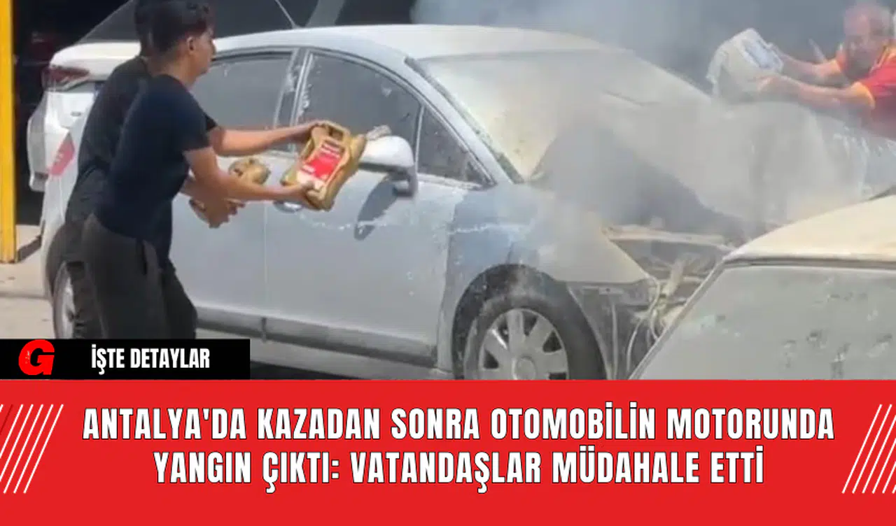 Antalya'nın Gazipaşa ilçesinde, bir kaza sonrası sanayiye götürülen otomobilin motor kısmında çıkan yangın, çevredeki vatandaşlar tarafından söndürüldü.