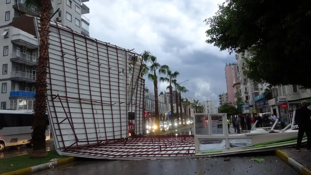 Antalya’da aniden bastıran sağanak ve fırtına, kenti kısa sürede felç etti. Perge Bulvarı üzerinde bir apartmanın çatısı tonlarca ağırlığıyla yola savruldu. Olay sırasında kimsenin bulunmaması muhtemel faciayı önledi.