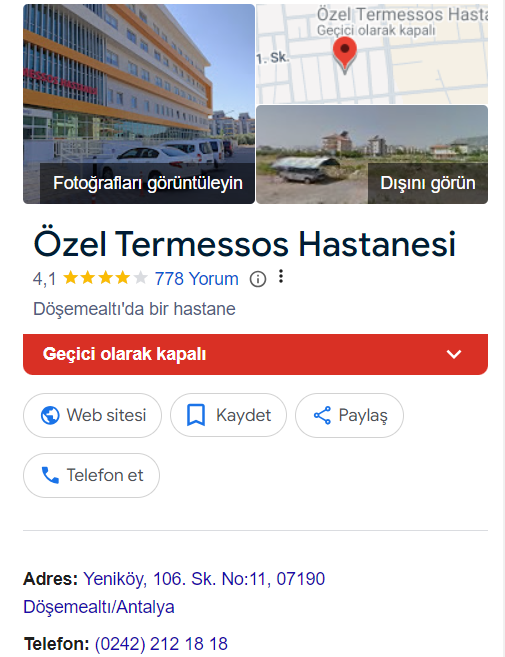 Özel Termessos Hastanesi Neden Kapalı?
