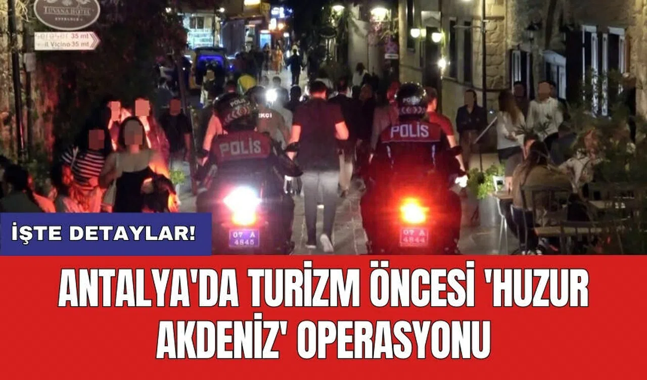 Antalya'da turizm sezonunun yaklaşmasıyla birlikte, kent merkezi ve 19 ilçede gerçekleştirilen 'Huzur Akdeniz' operasyonuna 50'si motorize, toplamda 250 ekip ve 4 bin polisin katıldığı belirtildi. Operasyon, hava ve deniz destekli olarak koordine edildi.