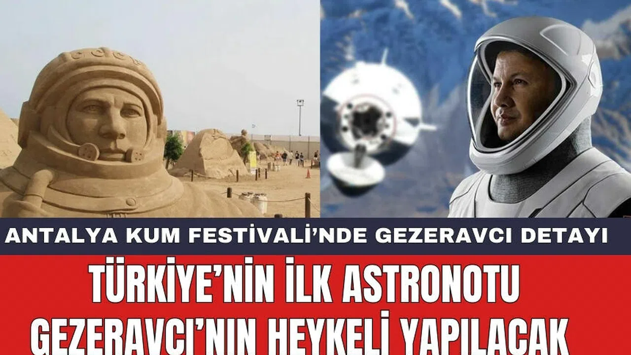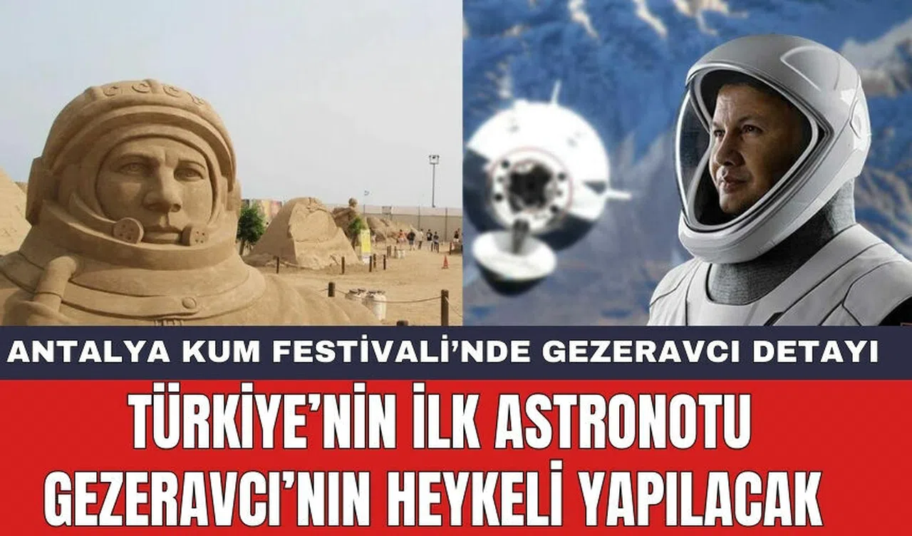 Antalya’nın ünlü Lara sahilinde düzenlenen Uluslararası Antalya Kum Heykel Festivali, bu yıl “Uzay Macerası” teması başlığıyla başladı. her yaştan insan için ilgi çekici kumdan heykelleriyle göz zevki yaşatan kum festivalinin öne çıkan heykeli Alper Gezeravcı detayı oldu. Uzaya çıkan ilk Türk astronot Alper Gezeravcı'nın kumdan heykeli Kum Heykel Festivali'nde dikilecek.
