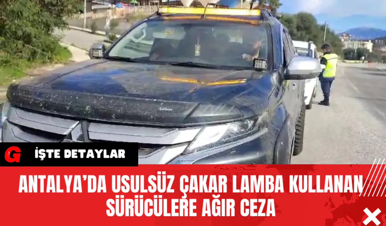 Antalya’da, usulsüz çakar lamba kullanan 6 araç sürücüsüne toplamda 38 bin 634 lira para cezası kesildi. Ayrıca, bu araçlar trafikten men edildi ve çakar lambaları söküldü.