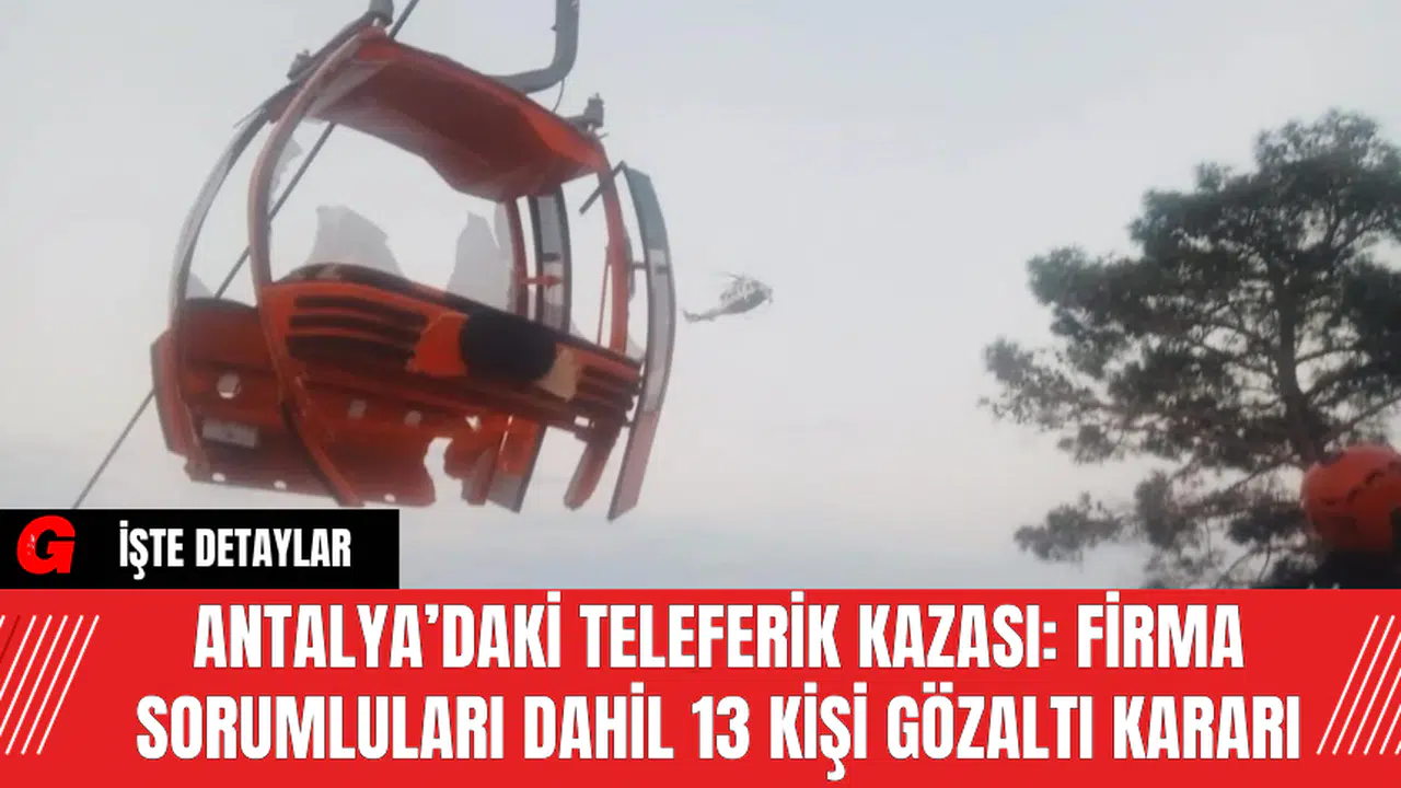 Antalya’da meydana gelen ve büyük yankı uyandıran teleferik kazasıyla ilgili yeni bir gelişme yaşandı. Kazayla ilgili soruşturma kapsamında, firma sorumlularının da aralarında bulunduğu 13 kişi için gözaltı kararı verildi.