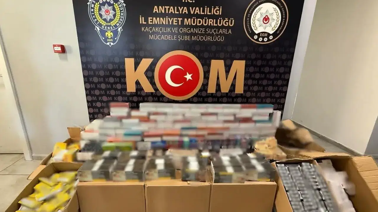 Antalya'da Emniyet birimleri tarafından son 1 haftada düzenlenen operasyonların sonuçları kamuoyuyla paylaşıldı. 7 günde meydana gelen 12 olayda 9 şüpheliye işlem yapıldı. 4 ilçede yapılan operasyonlarda 99 bin 160 makaron, 2 bin 781 paket sigara, 1541 elektronik sigara, 186 kilo tütün ve 184 litre sahte içki yakalandı.