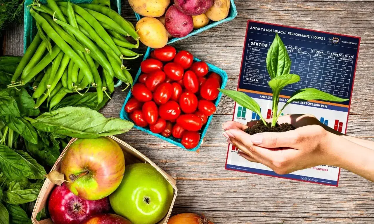 Antalya'nın 2025 yılı Ağustos ayında toplam ihracatı geçen yılın aynı ayına göre yüzde 3,6 azaldı ve 170,3 milyon dolar olarak gerçekleşti. Tarım ihracatı da yüzde 1,6 düşüşle 84,4 milyon dolara indi. Ancak yaş meyve sebze ihracatı yüzde 0,6 artışla 43,5 milyon dolar, süs bitkileri ve mamulleri ihracatı yüzde 30,7 artışla 3,5 milyon dolar oldu.