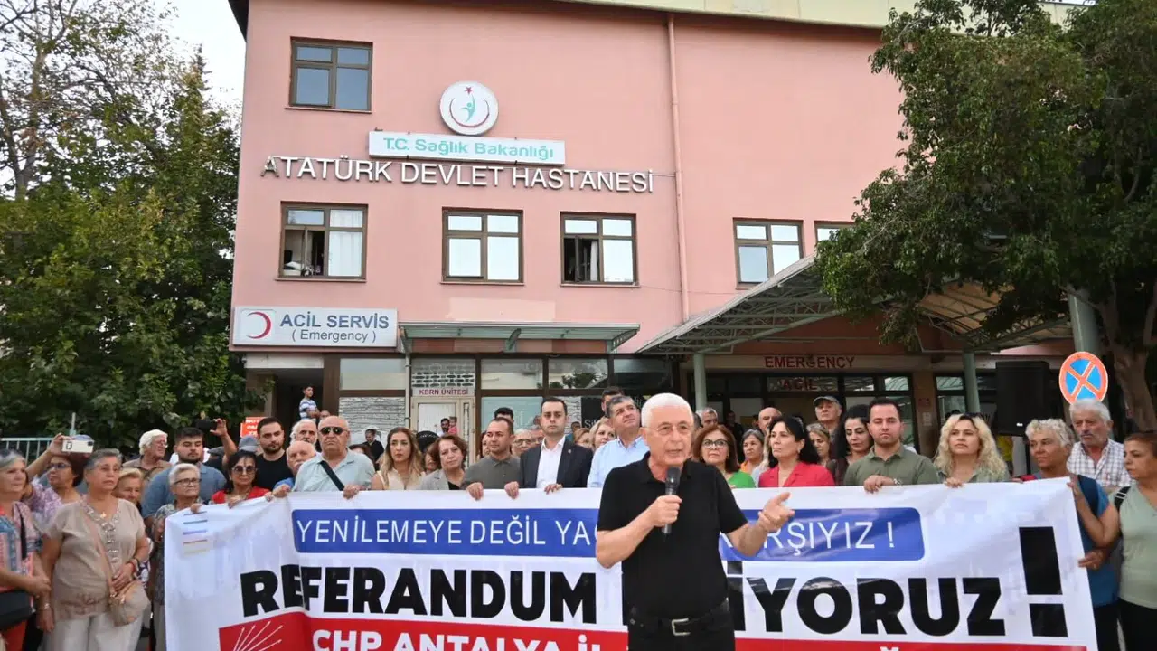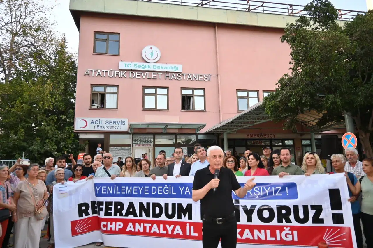 Antalya’da yıkımı yılan hikâyesine dönen Atatürk Devlet Hastanesi tartışmaları yeniden alevlendi. CHP Antalya Milletvekili Cavit Arı ve CHP İl Başkanı Nail Kamacı, hastane önünde yaptıkları açıklamada AK Parti İl Başkanı Ali Çetin’in tutumunu eleştirerek hem sağlık çalışanlarının hem de halkın huzursuz edildiğini savundu.