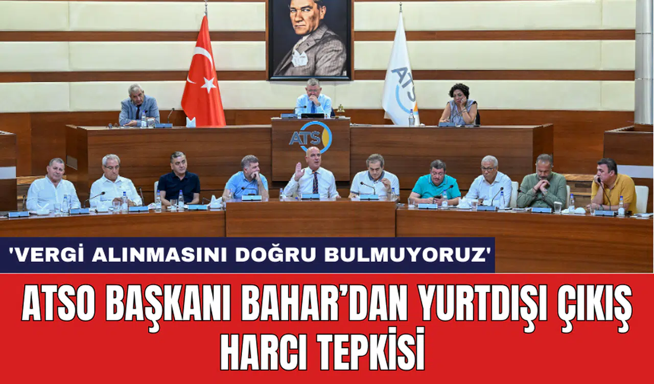 Antalya Ticaret ve Sanayi Odası (ATSO) Haziran Ayı Olağan Meclis Toplantısı, ATSO Meclis Salonu’nda gerçekleşti. Meclis Başkanı Ahmet Öztürk’ün açılış konuşmasıyla başlayan toplantıda, Yönetim Kurulu Başkanı Ali Bahar sektörel gündemi değerlendirerek önemli açıklamalarda bulundu. Özellikle yurt dışı çıkış harçlarına dair eleştirilerini dile getiren Bahar, 'Devletin, vatandaşlarının ülke dışına çıkışından vergi almasını doğru bulmuyoruz. Yurtdışına çıkış maliyetlerinin artması, işletmelerimiz için olumsuz bir gelişmedir' dedi.