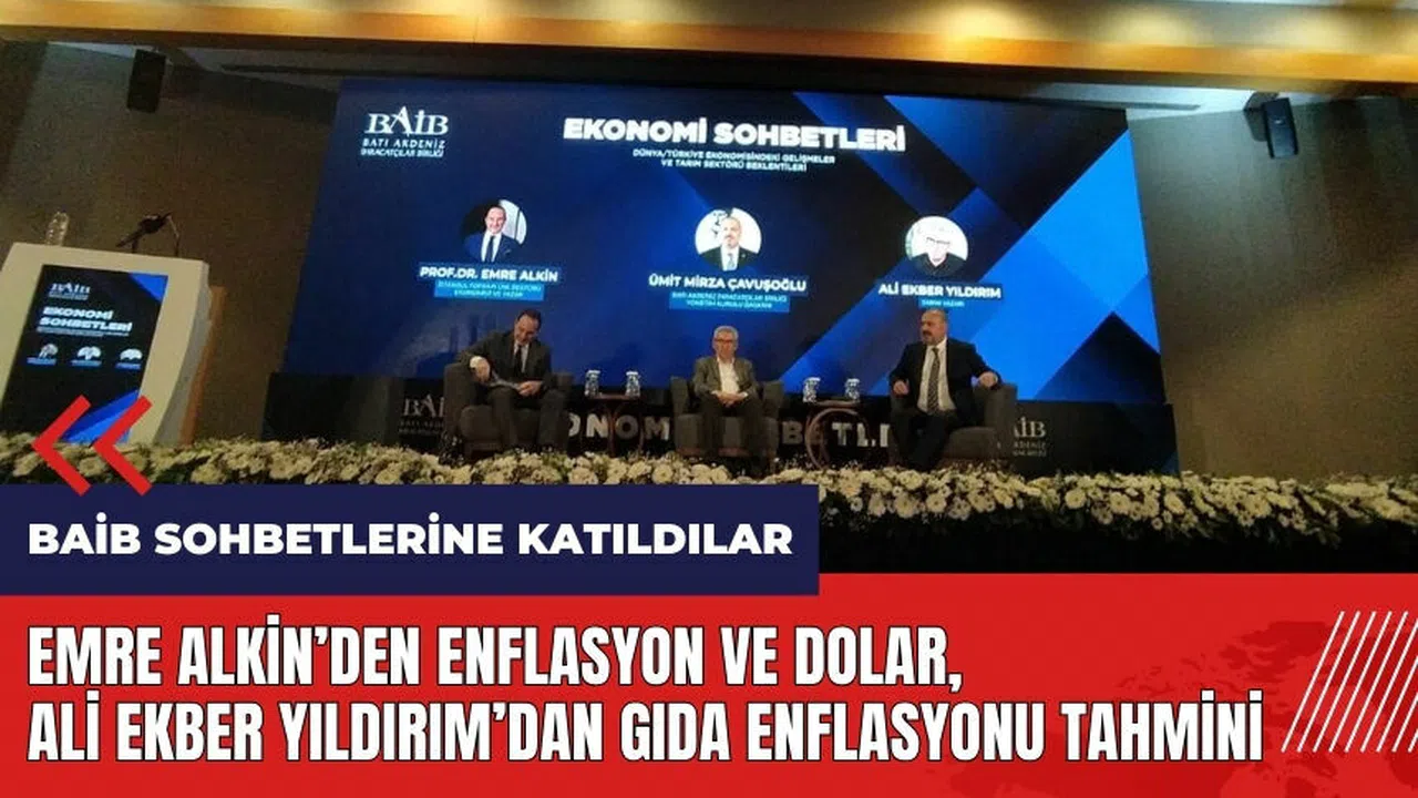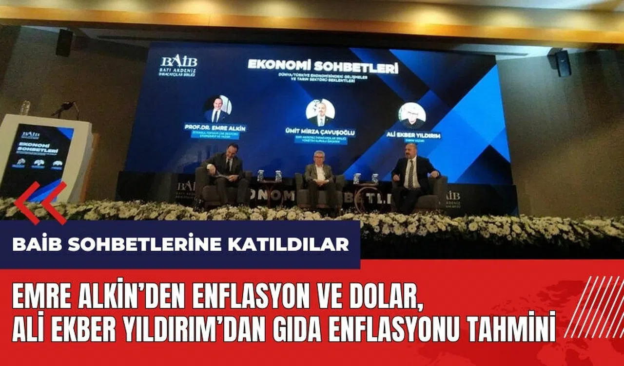 Batı Akdeniz İhracatçılar Birliği (BAİB) tarafından Antalya Ramada Otel'de düzenlenen Ekonomi Sohbetleri'ne Tarım Yazarı Ali Ekber Yıldırım ile birlikte konuk olan Ekonomist, Akademisyen ve Yazar Prof. Dr. Emre Alkin, sunumunun ardından gelen sorular üzerine 2024 yıl sonu enflasyon ve dolar tahminini açıkladı. Türk tarımındaki son durumu özetleyen Yıldırım ise gıda enflasyonu tahminini söyledi.