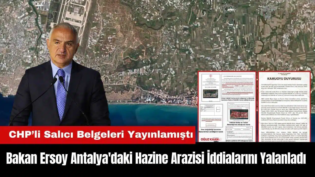 Kültür ve Turizm Bakanı Mehmet Nuri Ersoy, CHP'li Oğuz Kaan Salıcı’nın Antalya'daki hazine arazisi tahsisi ile ilgili iddialarını yalanladı.
