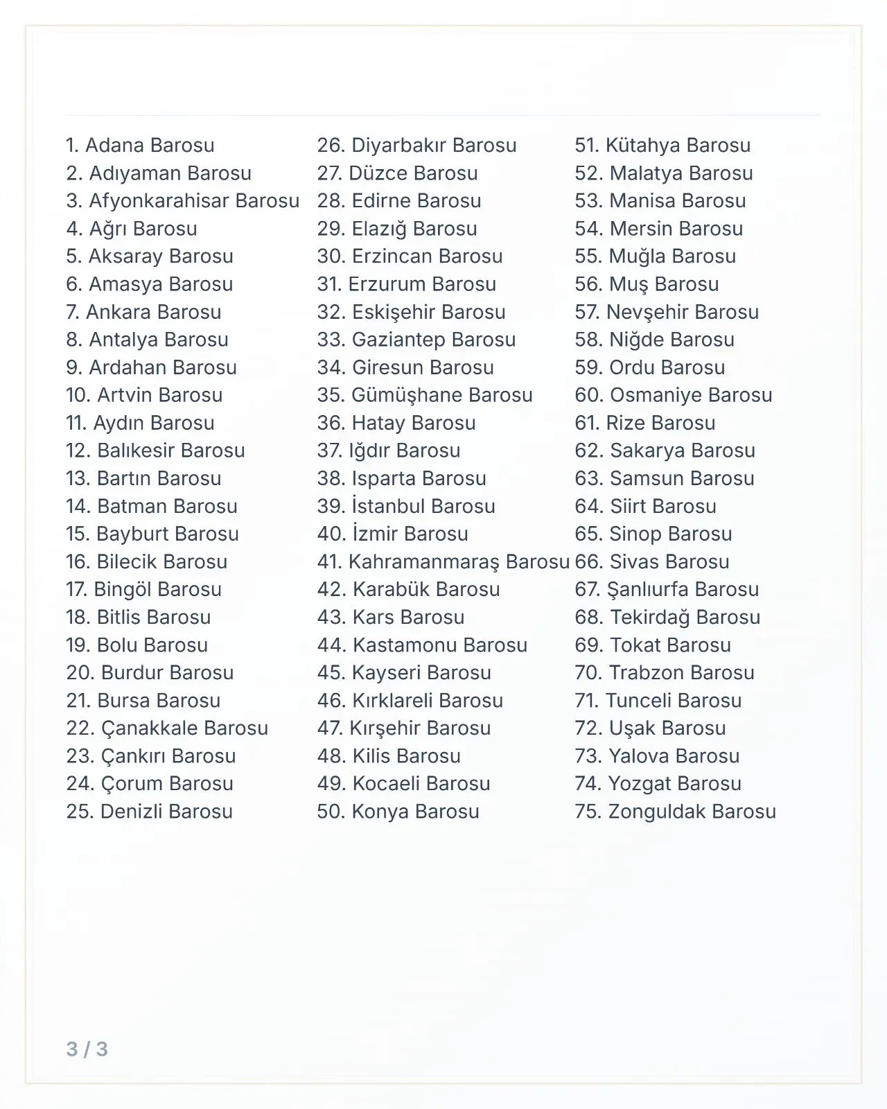 Yayınlanan 3 sayfalık deklarasyonun sonunda Türkiye’nin dört bir yanından 75 baronun imzası yer aldı. Listede Antalya Barosu sekizinci sırada yer alarak bu kurumsal mücadeleye tam destek verdiğini ilan etti. Barolar, hukuk hizmetlerinin mekanik bir yapıya indirgenmesine yönelik her türlü girişime karşı hukuki ve kurumsal mücadeleyi kararlılıkla sürdüreceklerini kamuoyuna saygıyla duyurdu.