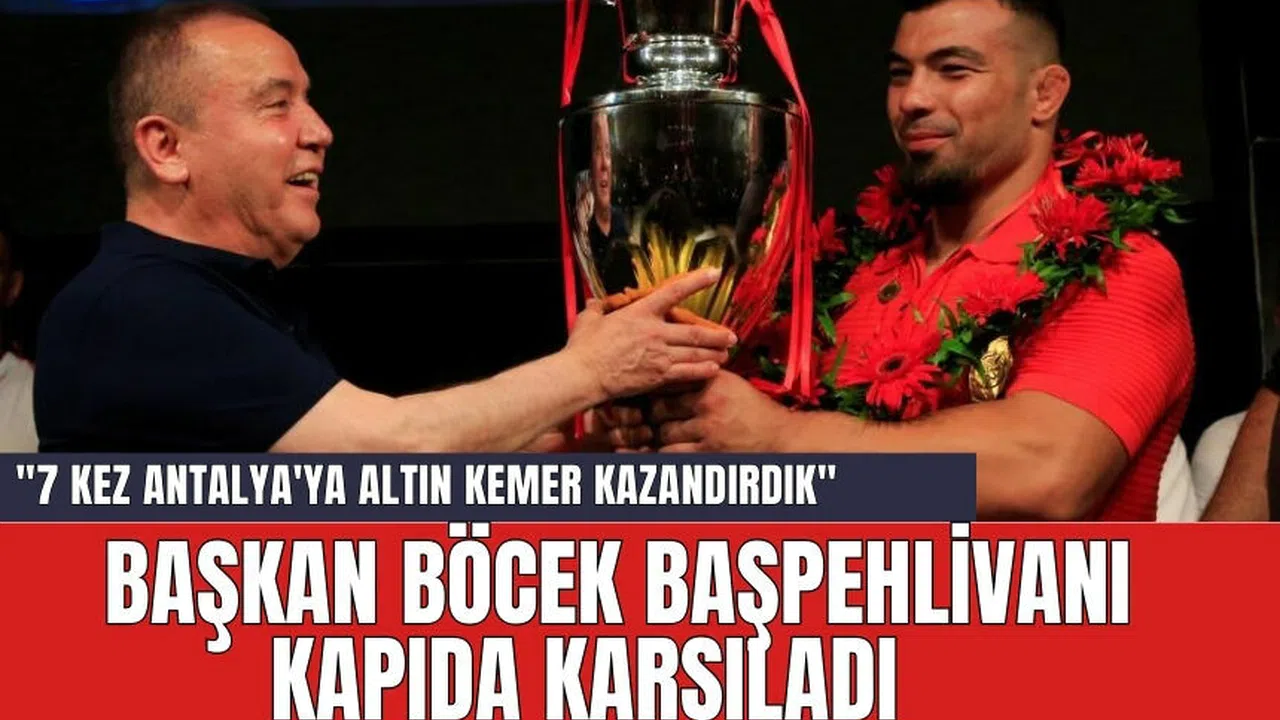 İlk kez altın kemer mutluluğunu 2006 yılında Osman Aynur ile yaşadıklarını aktaran Başkan Muhittin Böcek, “İsmail Balaban, Ali Gürbüz, Mustafa Taş ve iki defa da Yusuf Can Zeybek oğlum ile altın kemeri Antalya'ya getirdik. Büyükşehir Belediyesi bünyesinde bulundurduğu 500 yakın güreşçi ile Türkiye'de güreşe en büyük destek veren belediyedir. Bizler altyapılardan yeni Yusuf Can Zeybekler, Ali Gürbüzler, İsmail Balabanlar yetiştireceğiz. Güreşçilerimize Büyükşehir Belediye Meclisi'nden de alacağımız karar ile önemli destekler vereceğiz” diye konuştu.