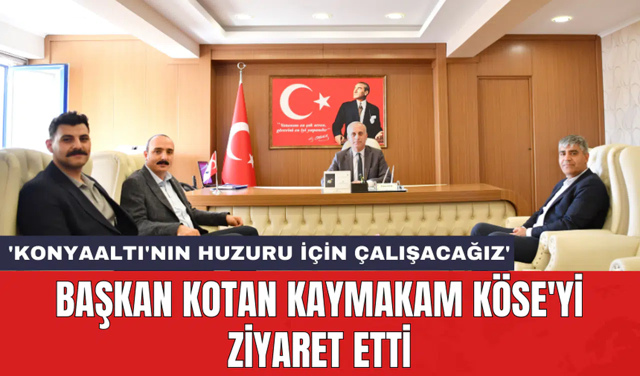 Konyaaltı Belediye Başkanı Cem Kotan, göreve başladıktan sonra ilk ziyaretini Konyaaltı Kaymakamı Rahmi Köse'ye gerçekleştirdi. Ziyarette, Konyaaltı'nın geleceği için iş birliği mesajları verildi.
