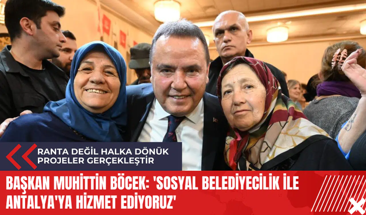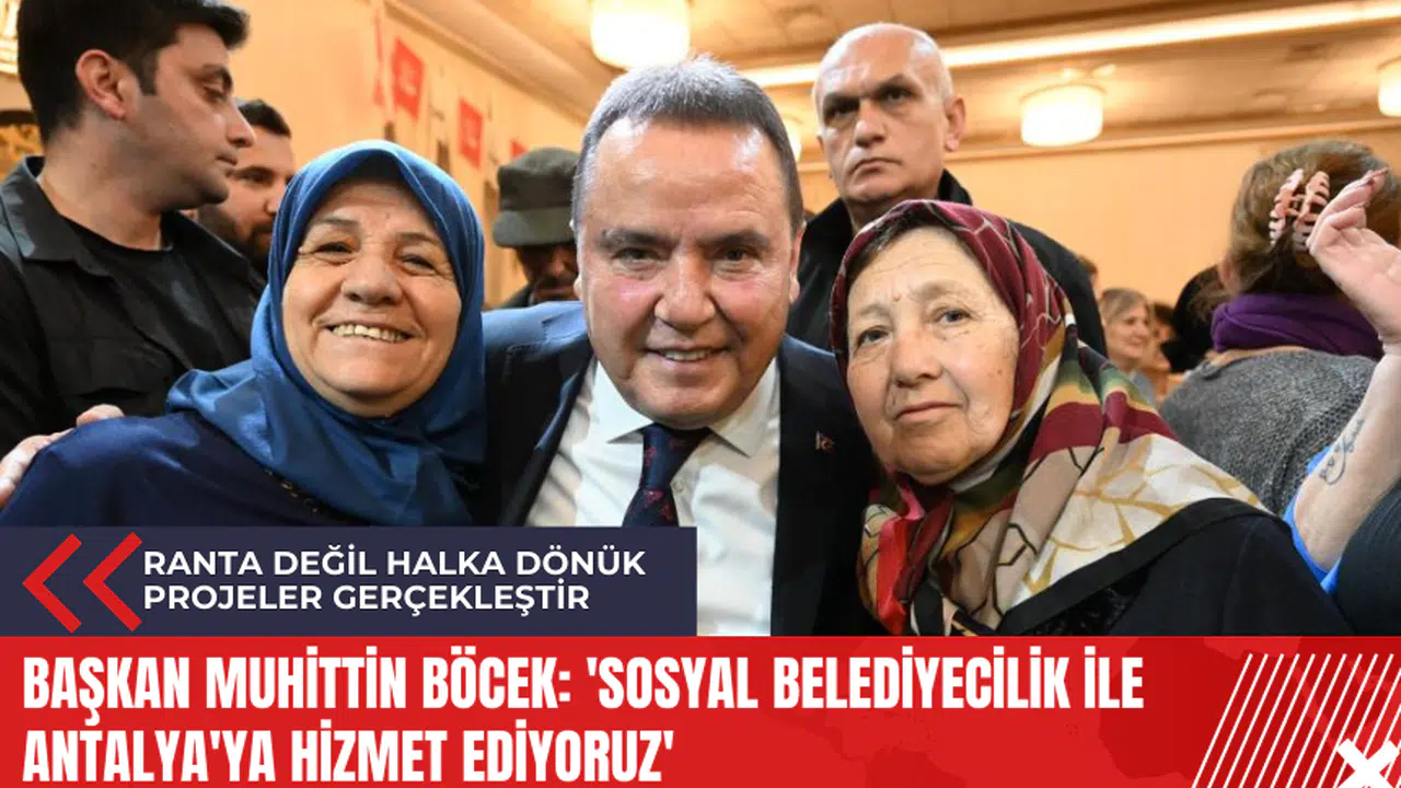 Başkan Muhittin Böcek, sosyal belediyecilik anlayışı içinde herkesi ötekileştirmeden Antalya'ya hizmet ettiklerini vurgulayarak, seçim sloganlarının 'Herkesin Başkanı" olduğunu ve tüm vatandaşların oyuna talip olduklarını ifade etti. Türkiye Cumhuriyeti vatandaşı olan herkesi kucaklayacaklarını ve herkesin belediye başkanı olacaklarını söyleyen Böcek, vatandaşları ayırt etmeden, aynı azim ve kararlılıkla hizmetlerine devam edeceklerini belirtti.