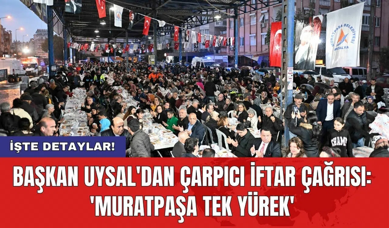 Dualar eşliğinde açılan orucun ardından Başkan Uysal, mahalleliye seslendi. "Omuz omuza, kol kola bir dünyamız var" diye başlayan konuşmasında Uysal, mahalle sakinlerine şunları söyledi: “Bir yıl aradan sonra aynı sofranın etrafında beraberiz. Ramazan’ımız hayırlı olsun. Tuttuğunuz oruçları Allah kabul etsin. Biz de ayrı gayrı yok. Bütün Muratpaşa tek yürek. Anca beraber kanca beraber. Bu sofranın etrafına gönlü zengin olan, gönlü güzel olan birlikten beraberlikten yana olan, saygıdan sevgiden yana olan, yüreği geniş olan, kalbi büyük olan insanların birliğini önemseyen bütün Muratpaşalılar bizim Halil İbrahim sofralarımıza her Ramazan da mahallelerimizde oturuyorlar.”