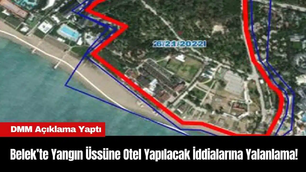 Yapılan açıklamada, Belek Orman Yangın Üssü olarak bilinen alanın hâlâ orman yangınlarıyla mücadele faaliyetleri kapsamında kullanıldığı vurgulandı. DMM, “Belek Orman Yangın Üssü olarak bahsedilen alan, Kültür ve Turizm Bakanlığı’nın imar planlarında korunmuş olup yapılaşmaya veya otel planlamasına konu edilmemiştir. Bu alan, planlarda “yangın üssü” olarak tanımlanmakta ve işlevini korumaktadır” dedi.