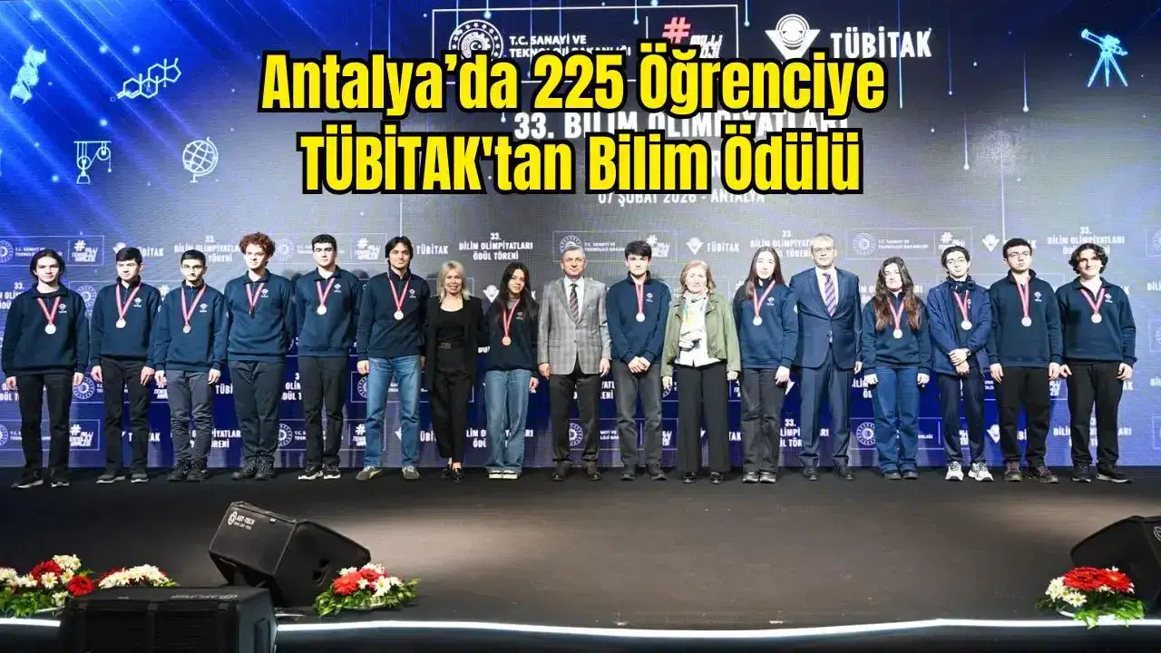 Antalya'da, Türkiye Bilimsel ve Teknik Araştırma Kurumu (TÜBİTAK) tarafından düzenlenen 33. Bilim Olimpiyatları Ödül Töreni gerçekleştirildi. 2025 yılında ulusal ve uluslararası bilim olimpiyatlarında başarı elde eden 38 altın, 77 gümüş ve 110 bronz madalyalı 225 öğrenci ödüllerine kavuştu.