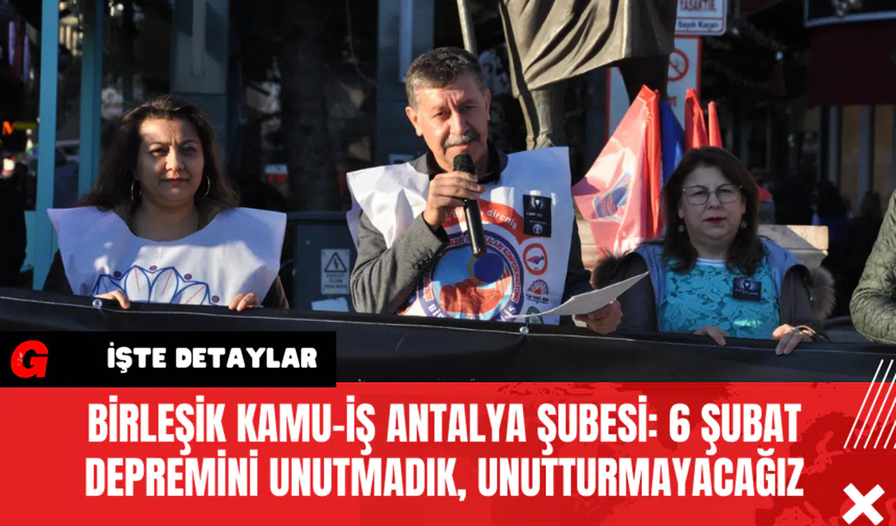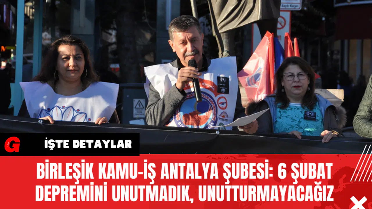 Birleşik Kamu İş Konfederasyonu Antalya Şubesi, 6 Şubat depreminde hayatını kaybeden vatandaşlar için Attalos Meydanı’nda anma töreni düzenledi. Antalya Şube Başkanı Sadık Acar, “6 Şubat depremlerini unutmadık, unutturmayacağız” dedi.