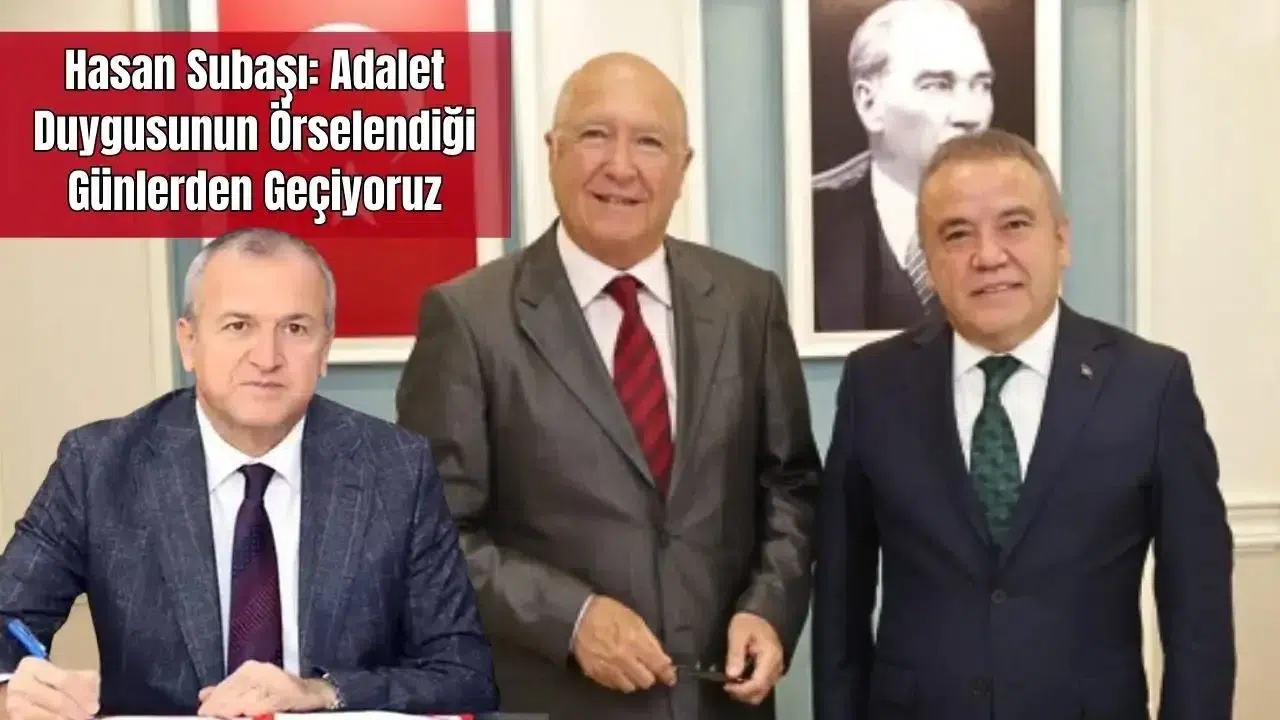 Antalya'nın eski belediye başkanı ve milletvekili Hasan Subaşı, cezaevinde tutuklu bulunan Muhittin Böcek ve İbrahim Kurt'u ziyaret etti. Murat Çalık'ı hatırlatarak adalet duygusunun örselendiğini ifade eden Subaşı, Böcek ve Kurt için, "Yaşadıkları olumsuz koşullara rağmen metanetlerini muhafaza ediyor olmaları, insanın yüreğine bir nebze olsun teselli veriyor" dedi.