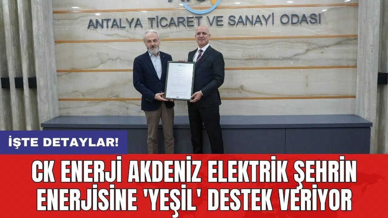Akdeniz Üniversitesi Rektörlüğü ile Antalya Serbest Bölge Kurucu ve İşleticisi AŞ’nin elektrik tüketimlerinin yenilenebilir kaynaklardan karşılandığına dair sertifika almalarına destek olan CK Enerji Akdeniz Elektrik; Antalya Ticaret ve Sanayi Odası’nın (ATSO) yıllık 576 MWh, Alanya Ticaret ve Sanayi Odası’nın yıllık 92 MWh, Antalya Kültür ve Turizm İl Müdürlüğü’nün de 117 MWh’lik elektriği kapsayan tüm yıllık tüketimlerinin yeşil enerjiden sağlandığını belgeledi.