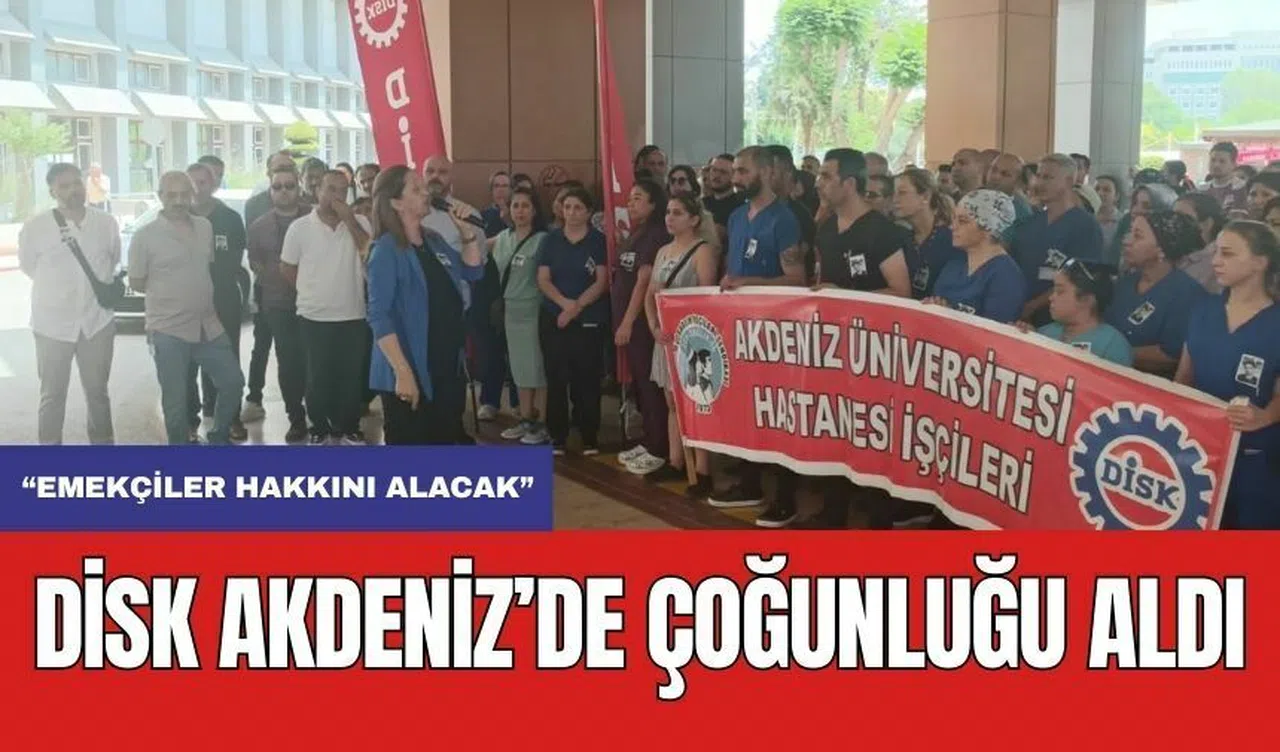 DİSK Dev Sağlık-İş Sendikası Akdeniz Üniversite Hastanesi’nde çoğunluğu aldı. DİSK Genel Başkanı Arzu Çerkezoğlu, genel merkez yönetimi, DİSK Akdeniz Bölge Temsilcisi ve Genel-İş Antalya Şube Başkanı Vedat Küçük, Akdeniz Üniversitesi Tıp Fakültesi Hastanesi DİSK Sağlık Temsilcisi Hasan Birgül ve üyelerin katıldığı eylemde konuşan Genel Başkan Arzu Çerkezoğlu, “Masaya oturduğumuzda öyle 3-5 kişi değil bu hastanede bin 600 arkadaşımız varsa, hepsi o masaya oturacak. Bütün kararları hep birlikte alacağız ve aldığımız kararları hep birlikte hayata geçireceğiz. Her yerde gururla söylüyoruz. Türkiye’nin en iyi toplu sözleşmelerini yapıyoruz. Bu toplu sözleşme politikamıza inanarak DİSK’e bağlı bütün sendikaların toplu sözleşmeleri anlattığım gibi yapılıyor. Bugün artık bu toplantı yeni bir başlangıç olsun. Akdeniz Üniversitesi Hastanesi için yeni bir milat olsun. Diğer sendikalardan istifa edip DİSK’e üye olacak arkadaşlarımız için 4 gün var. Kafasında hala soru işareti olan arkadaşlarımızı ikna edelim ve o arkadaşları da bu mücadeleye kazandıralım” dedi.