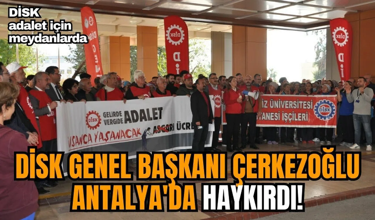 Devrimci İşçi Sendikaları Konfederasyonu (DİSK) yönetimi, DİSK Akdeniz Bölge Temsilcisi Vedat Küçük ve DİSK üyelerinin katıldığı eyleme Antalya Tabip Odası ve Sağlık ve Sosyal Hizmet Emekçileri Sendikası Antalya Şubesi üyeleri de destek verdi. Antalya Akdeniz Üniversitesi'nde Genel başkan Arzu Çerkezoğlu yaptığı açıklamada, “İnsanca bir yaşam için gelirde adalet, vergide adalet istediklerini ve bunu için alanlarda olarak Türkiye’nin dört bir yanında ayağa kalktıklarını dile getirdi. Çerkezoğlu, konuşmasının devamında “Evet, bizler biliyoruz ki tüm iççilerin insanca yaşamasını sağlayacak ücret alabilmesi mümkün, Bu ülkenin kaynakları, bu ülkede hepimizin çalışarak ürettiği toplam değer 25 milyonun insanca yaşaması için yeterlidir. Yeter ki tercihler değişsin, yeter ki zihniyet değişsin. Biz adalet istiyoruz. Gelirde, vergide ve ülkede adalet istiyoruz. Her insan gibi insanca yaşamak istiyoruz. Hakkımızı istiyoruz, hakkımızı alana kadar da mücadelemizi büyütmeye kararlıyız” dedi.
