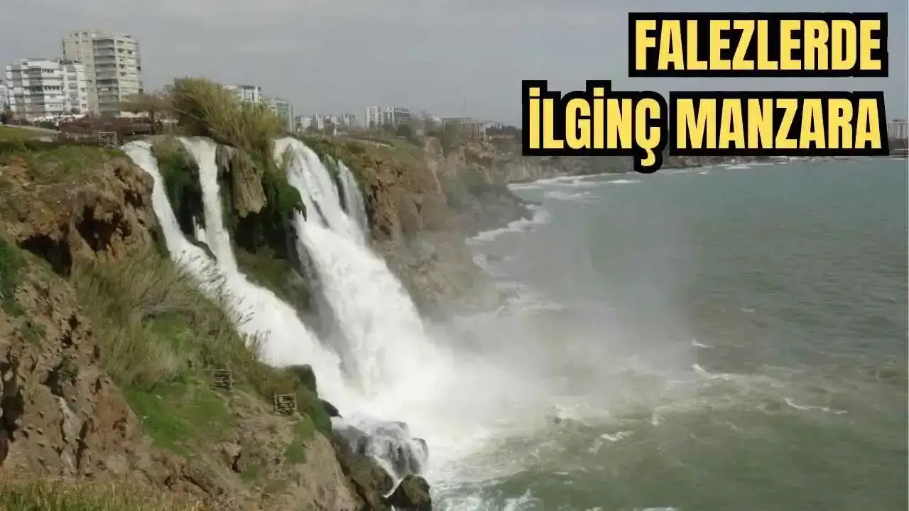 Türkiye’nin turizm başkenti Antalya’da etkili olan şiddetli yağış, kentin simge noktalarından Düden Şelalesi’nin debisini ve rengini değiştirdi. Yağışla birlikte yüksek kesimlerden taşınan toprak ve sediment, şelale aracılığıyla Akdeniz’e ulaştı. Bu durum, falezler boyunca denizin renginin kahverengiye dönmesine neden oldu.