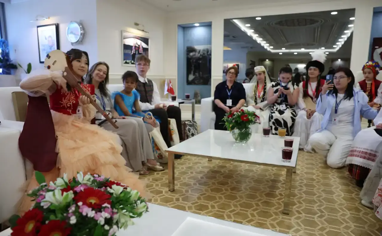 Buluşmada Azerbaycan ve Kırgızistan’dan gelen çocukların yöresel çalgılarla sunduğu kısa müzik dinletileri büyük ilgi gördü.
