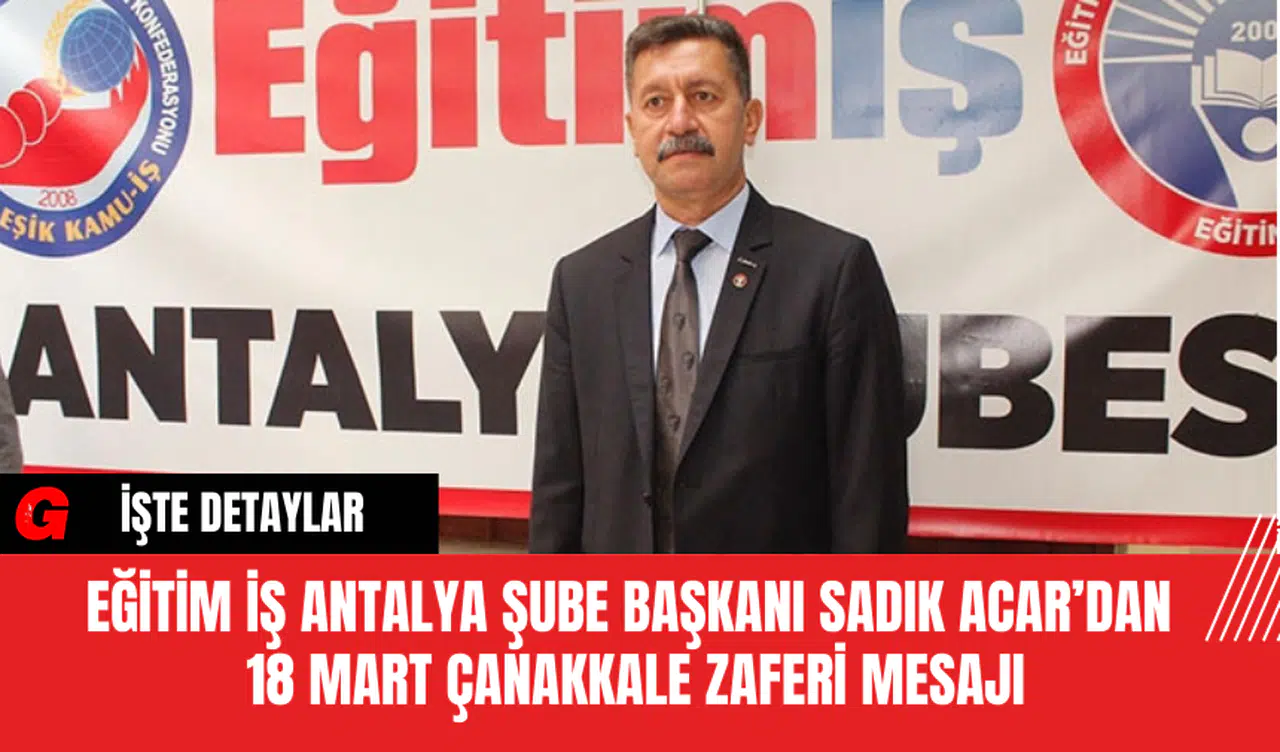 Eğitim İş Antalya Şube Başkanı Sadık Acar, Çanakkale Zaferi’nin birlik ve beraberliğimizin sembolü olduğunu belirtti.