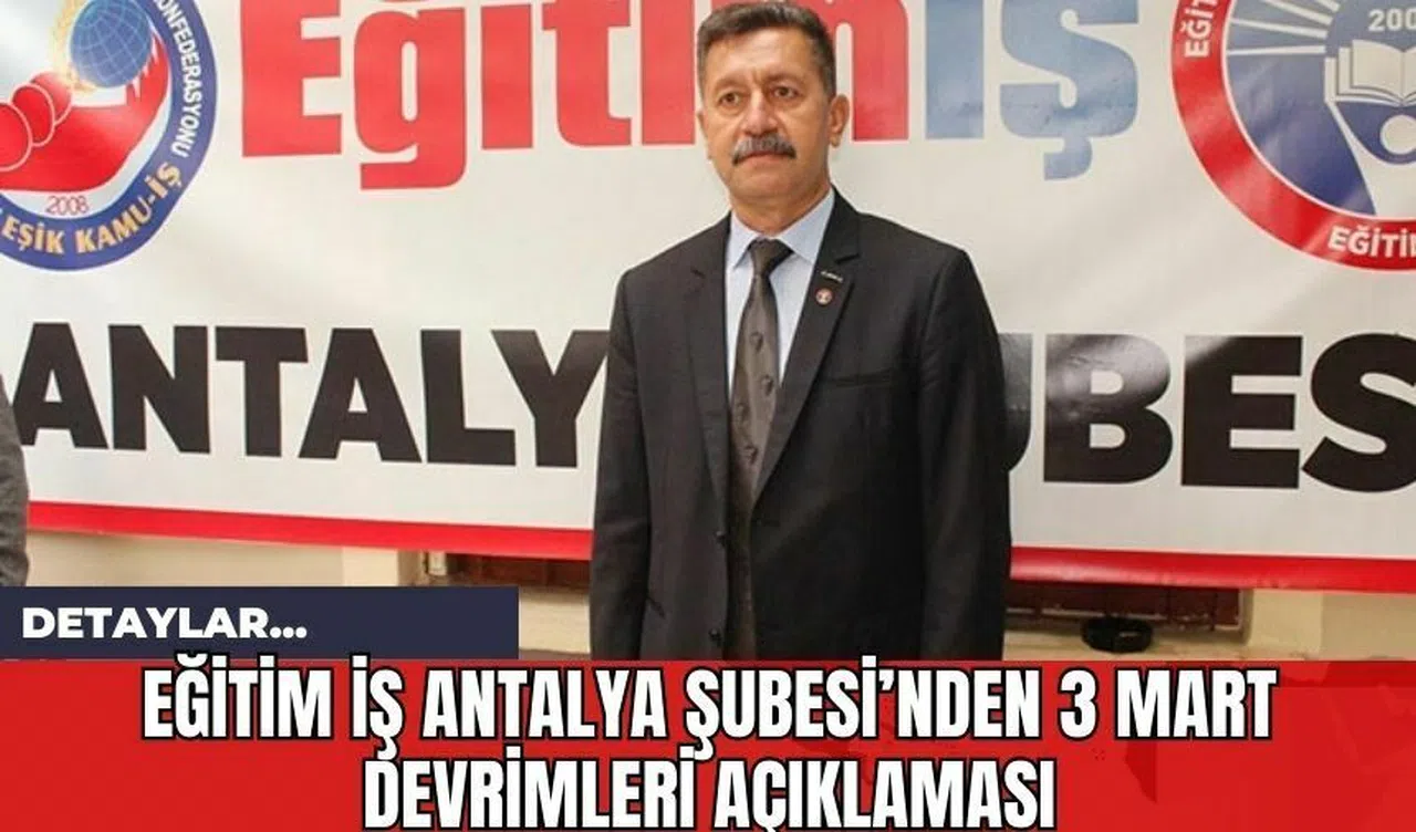 Eğitim İş Antalya Şubesi Başkanı Sadık Acar, Türkiye'nin eğitim sisteminde yaşanan değişimlere ve laiklik ilkesinin korunmasına yönelik kaygılarını dile getirdi. Atatürk ilke ve devrimlerine, Cumhuriyet'in kazanımlarına ve ülke bütünlüğüne vurgu yapan Acar, eğitim alanındaki değişimlere dair endişelerini kamuoyuyla paylaştı.