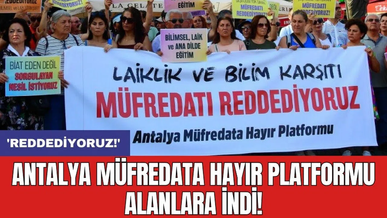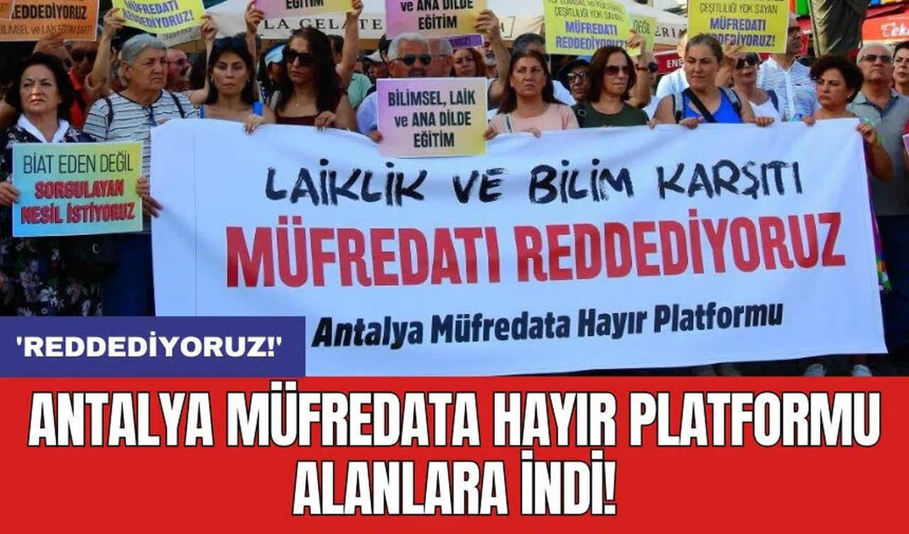 Antalya Müfredata Hayır Platformu alanlara indi. Bugün saat 18.00'de Attalos Meydanı'nda açıklama yapan platform adına Eğitim Sen Antalya Şube Başkanı Kadir Öztürk, şunları söyledi: "Eğitimde ihtiyaç duyulan şey, yapay zeka, uzay yolculukları ve bilişim çağına uygun programlar olmalıdır. 21. yüzyılda uygulanacak eğitim programı, önerilen bu program olamaz."