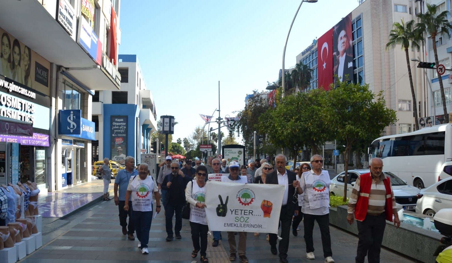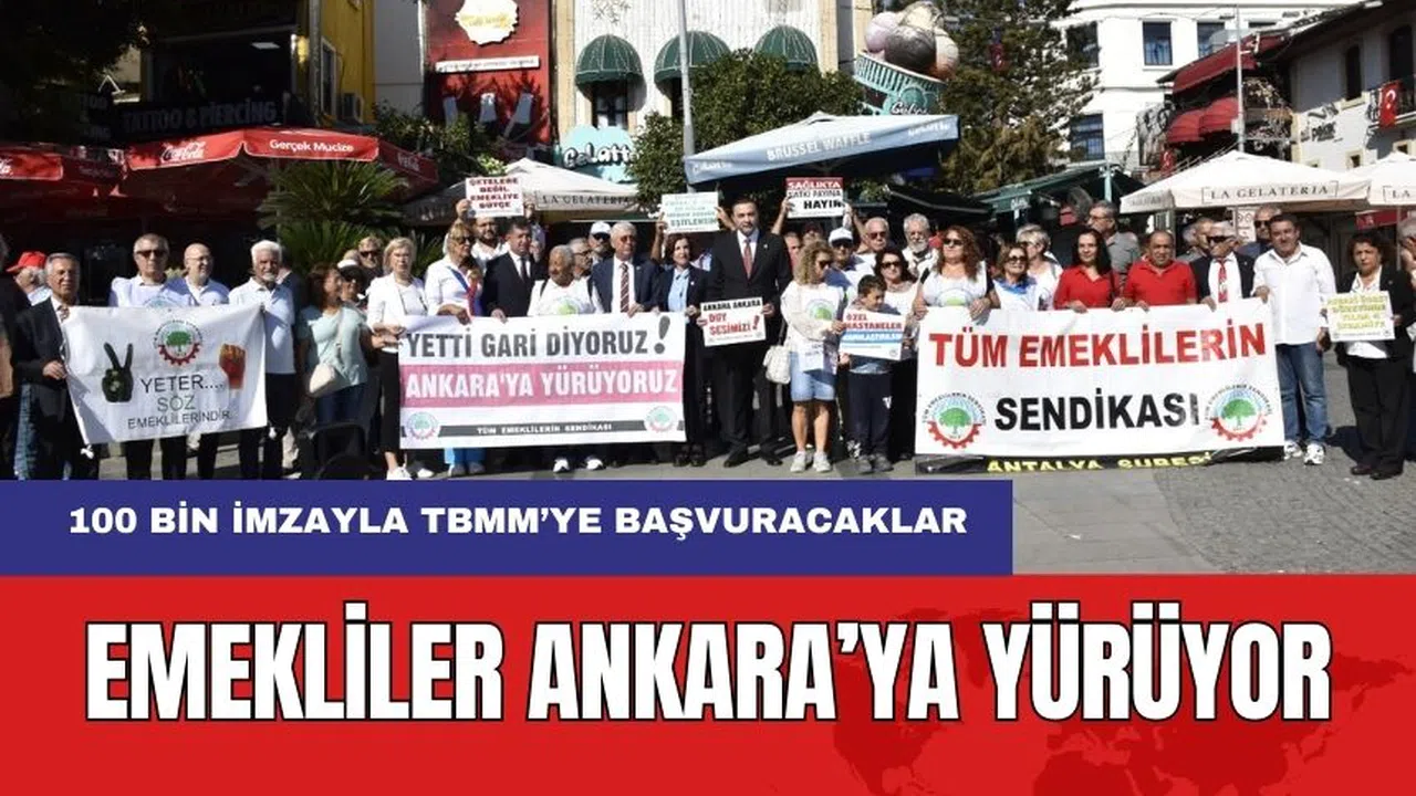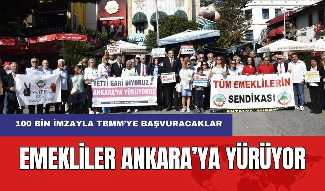 Tüm emeklilerin Sendikası topladığı 100 bini aşan imzalar ile, emeklilerin yaşadıkları sorunları Türkiye Büyük Millet Meclisi (TBMM) dilekçe komisyonuna iletecek. Tüm Emeklilerin Sendikası Antalya Şubesi 2 Kasım günü Ankara Sakarya Caddesi’nde yapılacak olan basın açıklamasına tüm emeklileri davet etti. Antalya Şubesi’nin Attalos Meydanı’nda yaptığı eyleme Cumhuriyet Halk Partisi (CHP) Antalya İl Başkanı Nail Kamacı, Antalya milletvekilleri Aykut Kaya, Cavit Arı, Aliye Coşar, parti yöneticileri de destek verdi. Attalos Meydanı’nda yapılan açıklama sonrası emekliler Aydın Kanza Parkı’nda kadar yürüyerek eylemi sonlandırdı.