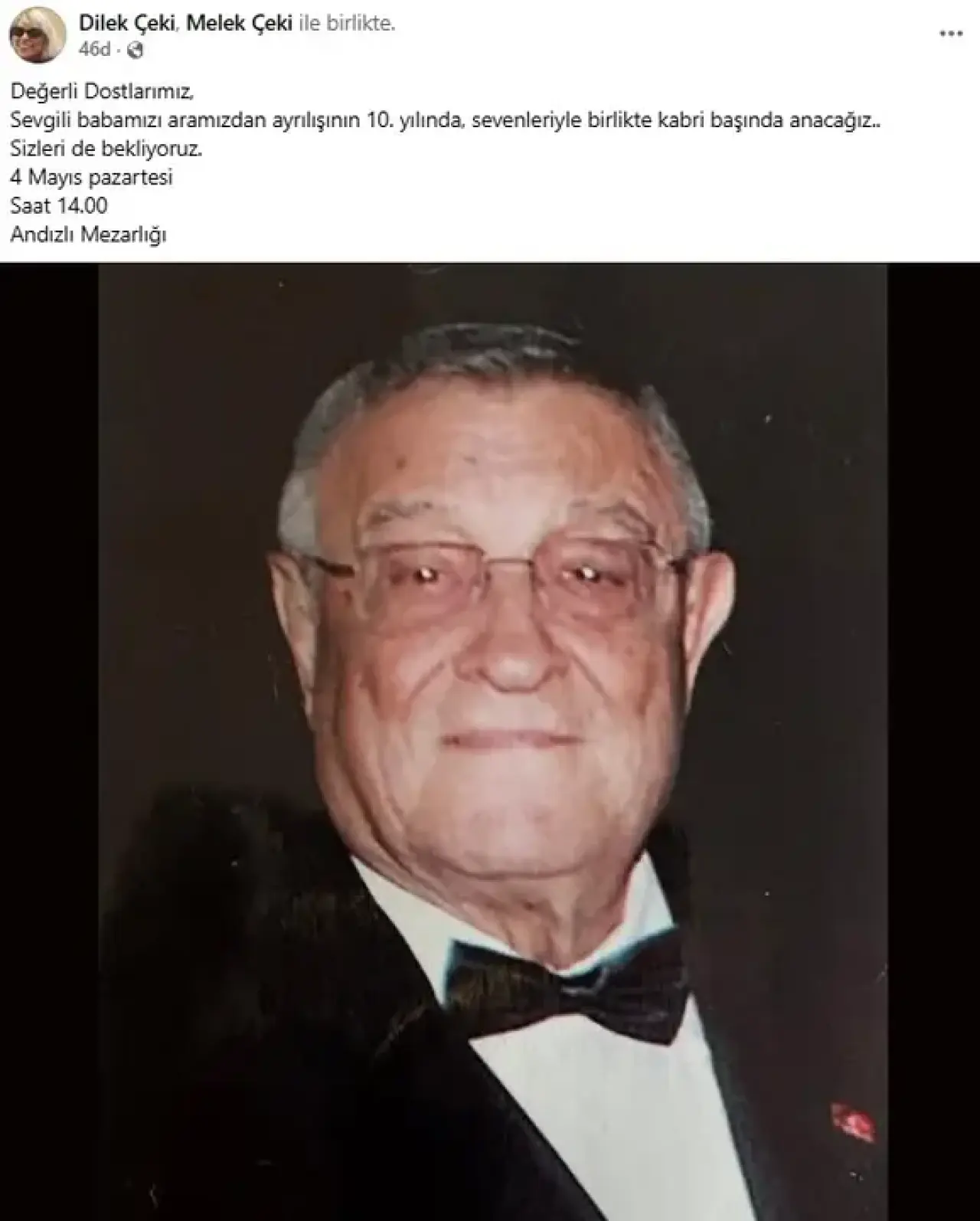 Gültekin Çeki'nin kızı Dilek Çeki, babasının hatırasını yaşatmak adına tüm sevenlerine açık bir çağrıda bulundu. Dilek Çeki paylaşımında, "Değerli Dostlarımız, Sevgili babamızı aramızdan ayrılışının 10. yılında, sevenleriyle birlikte kabri başında anacağız. Sizleri de bekliyoruz" ifadelerini kullandı. Bu anlamlı buluşma, 4 Mayıs Pazartesi günü saat 14.00'te Antalya'nın tarihi Andızlı Mezarlığı'nda gerçekleşecek.