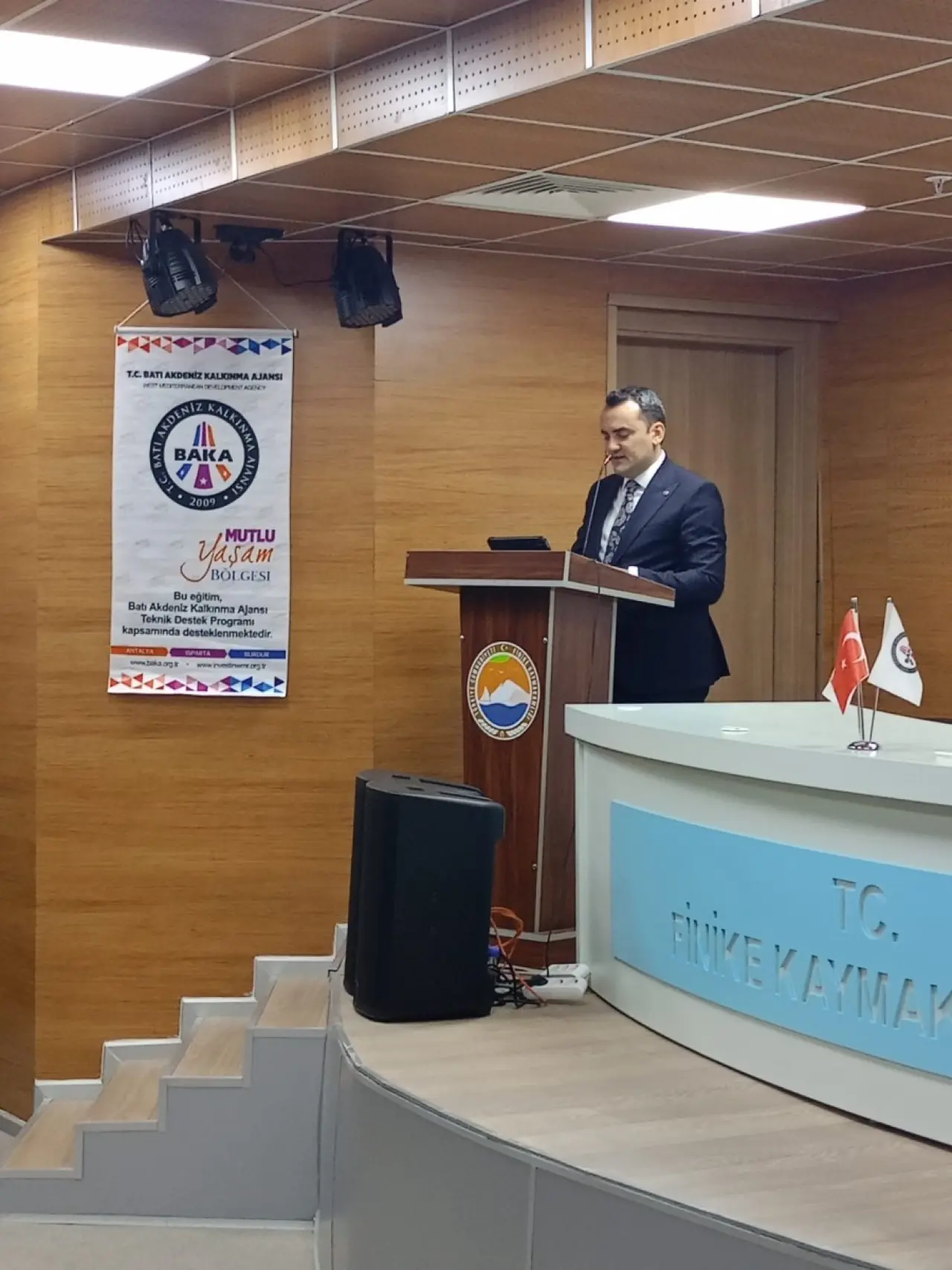 Finike Kaymakamlığı ev sahipliğinde düzenlenen “Finike'nin Tarımsal Ürünlerinin Coğrafi İşaret Tescil Süreci Eğitimleri ve İzlenebilirlik Stratejilerinin Oluşturulması” projesinin başlangıç toplantısı, geniş bir katılımla gerçekleştirildi. Toplantıya Baka Ajansımız Genel Sekreteri Volkan Güler ve Finike Kaymakamı Musa Kazım Çelik’in yanı sıra; Finike Belediye Başkan Yardımcısı Salih Dönmez, Antalya İl Tarım ve Orman Müdür Yardımcısı İbrahim Irmak, Finike İlçe Tarım Müdürü Hasan Ali Gültekin, Batı Akdeniz İhracatçılar Birliği Yönetim Kurulu Üyesi ve MEYSAN Yönetim Kurulu Başkanı Akın Veziroğlu, Yalnız Tarımsal Kalkınma Kooperatifi Başkanı Recep Sarıkaya, Ernez Bal Üreticileri Derneği Başkanı Aliriza Başaran ile diğer kurum ve kuruluşlardan yetkililer, muhtarlar, proje paydaşları ve Ajans uzmanlarımız katılım sağladı.