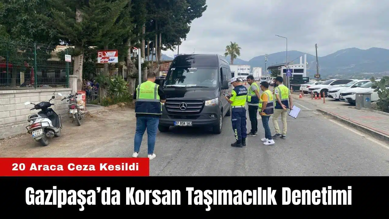 Antalya'nın Gazipaşa ilçesinde korsan yolcu taşımacılığına karşı düzenlenen denetimlerde 120 araç kontrol edildi, yasa dışı taşımacılık yaptığı belirlenen 20 araca idari para cezası uygulandı.