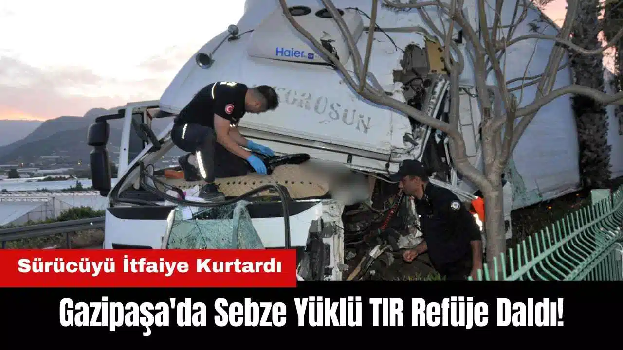 Antalya'nın Gazipaşa ilçesinde sebze yüklü TIR, refüjdeki ağaçlara çarptı. Sürücü aracın kabin bölümünde sıkıştı. TIR sürücüsünü kabinden itfaiye çıkardı.