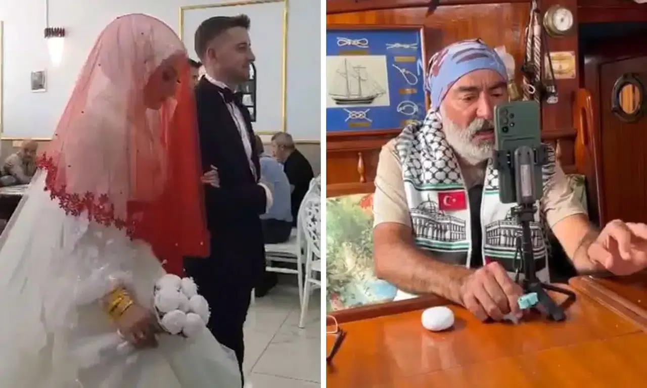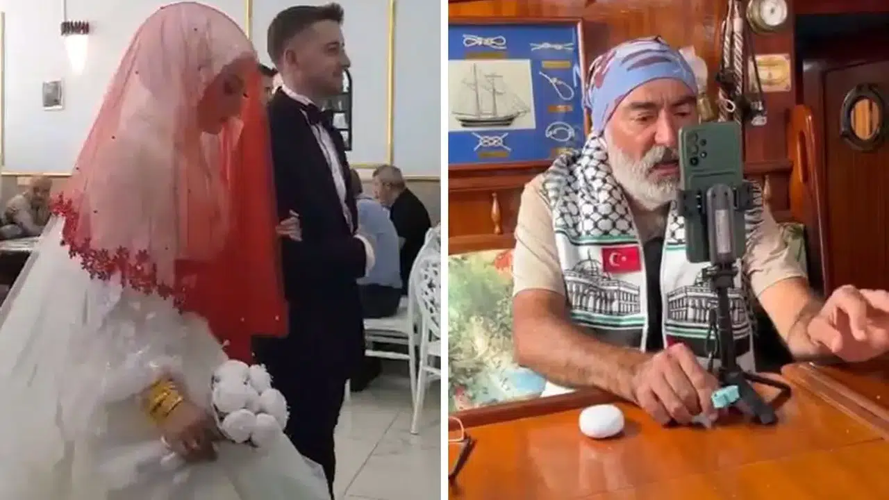 İsrail tarafından soykırım yapılan ve açlığa mahkum edilen Gazze'ye insani yardım götüren Küresel Sumud Filosu yoluna devam ederken Antalya'dan 3 aktivist de 'Adagio' isimli tekneyle Filistin'e ulaşmaya çalışıyor. Gazze yolcularından aktivist Hakan Şimşek, oğlunun nikahına Akdeniz’in ortasındaki tekneden katıldı.