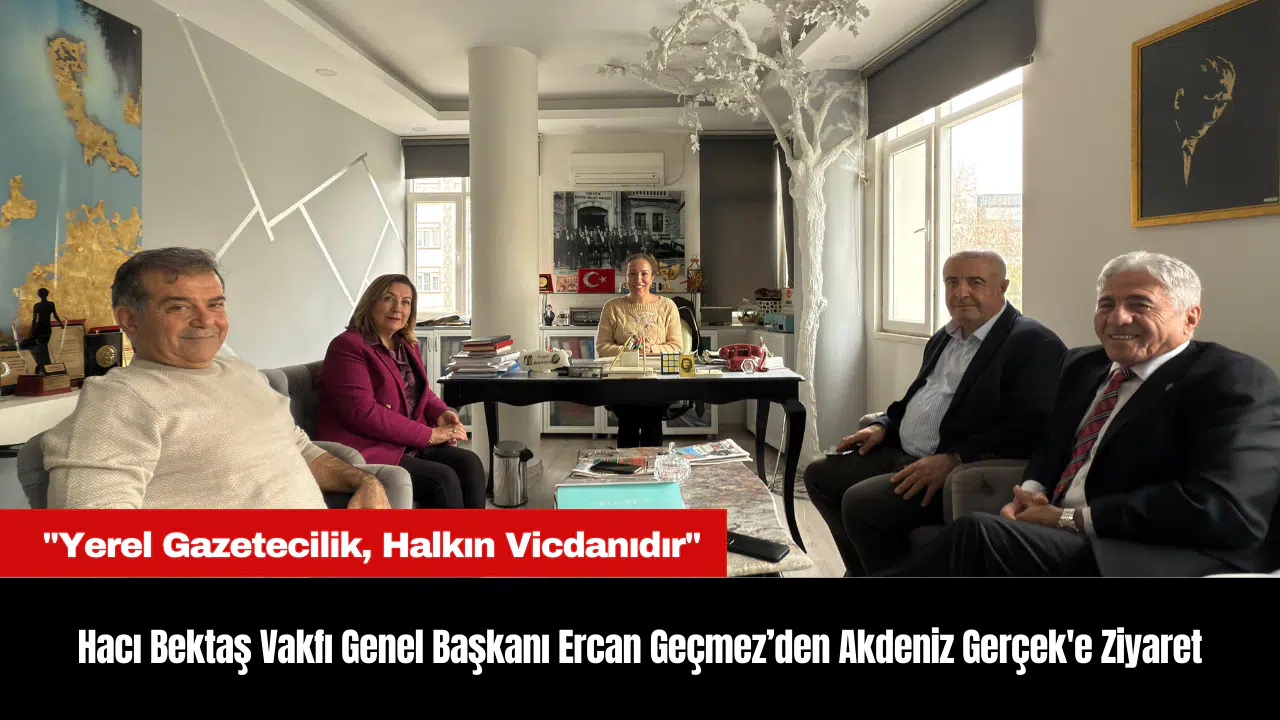 Hacı Bektaş Vakfı Genel Başkanı Ercan Geçmez, yazarımız Hacı Bektaş Vakfı Genel Merkez Disiplin Kurulu Başkanı Binali Efe ve Cumhuriyet Halk Partisi Konyaaltı Belediye Meclis Üyesi Hanife Aldemir, Akdeniz Gerçek Gazetemizi ziyaret etti. Konukları Akdeniz Gerçek Gazetesi İmtiyaz Sahibi Ahmet Başkaya ve Genel Yayın Yönetmeni Songül Başkaya ağırladı. Hacı Bektaş Vakfı Genel Başkanı Ercan Geçmez gazetemize özel açıklamalar yaptı.