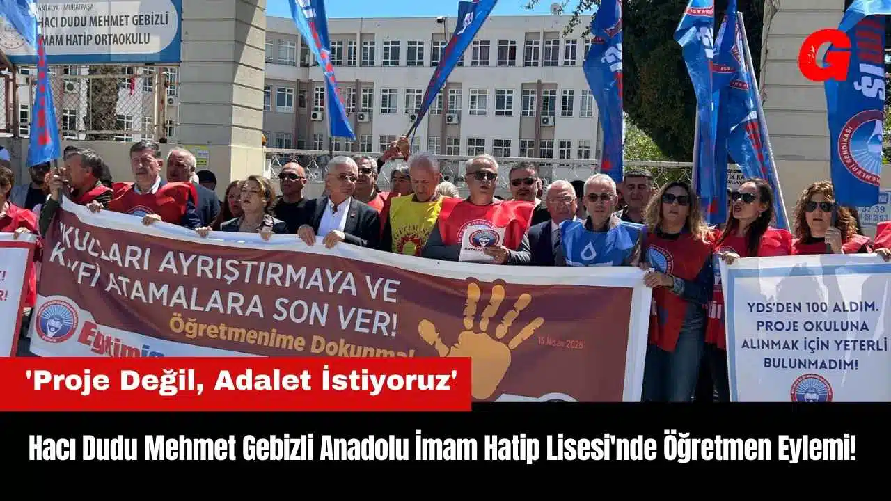 Hacı Dudu Mehmet Gebizli Anadolu İmam Hatip Lisesi'nde görev süresi dolan 58 öğretmenden 31’inin görev süresinin uzatılmadığını ifade eden Güneş, “Antalya’daki 89 proje okulunda birçok öğretmen hiçbir somut kriter olmadan görevlerinden uzaklaştırılıyor” açıklamasını yaptı.
