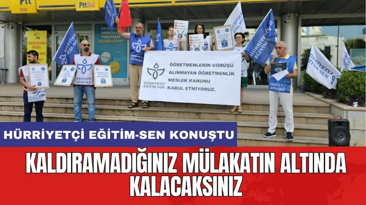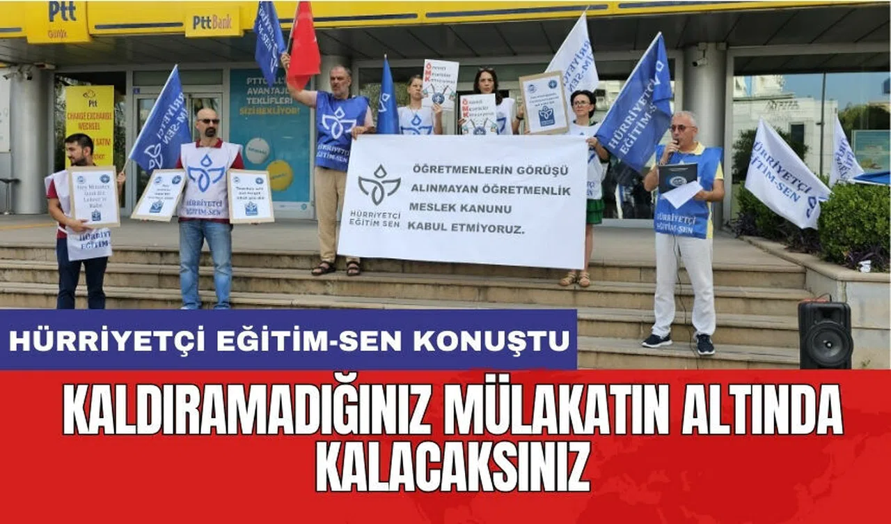 Hürriyetçi Eğitim-Sen Antalya Şube Başkanı Hilmi Taner, “Biz sendikaların eylem yerleri genelde milli eğitim müdürlüğü önüdür. Ancak eğitim çalışanlarının taleplerine kulak tıkayan bir milli eğitim bakanlığı var. Mili Eğitim Bakanlığı yetkililerince Rotasyon düzenlemesinin taslakta olmadığı ifade edilmesine rağmen, Millî Eğitim Bakanlığı Öğretmen Atama ve Yer Değiştirme Yönetmeliğinin 48. maddesinde öğretmenlerin bulunduğu kurumda azami çalışma süresinin 12 yıl olduğu şeklinde daha önceden mevcut olan bir düzenlemeyi kanuna koyarak zaman içinde rotasyona yasal dayanak oluşturmaya çalışmaktadır. Yeni atanacak 20 bin öğretmen adayına mülakat yapılmaya devam edilecektir. Seçim öncesinde kamuya memur alımlarında kaldırılacağı söylenen mülakat, ne kadar ağır bir şeymiş ki bir türlü yerinden kaldırılamadı. Ama buradan uyarıyoruz, kaldıramadığınız mülakatın altında bir gün sizler de kalacaksınız” dedi.