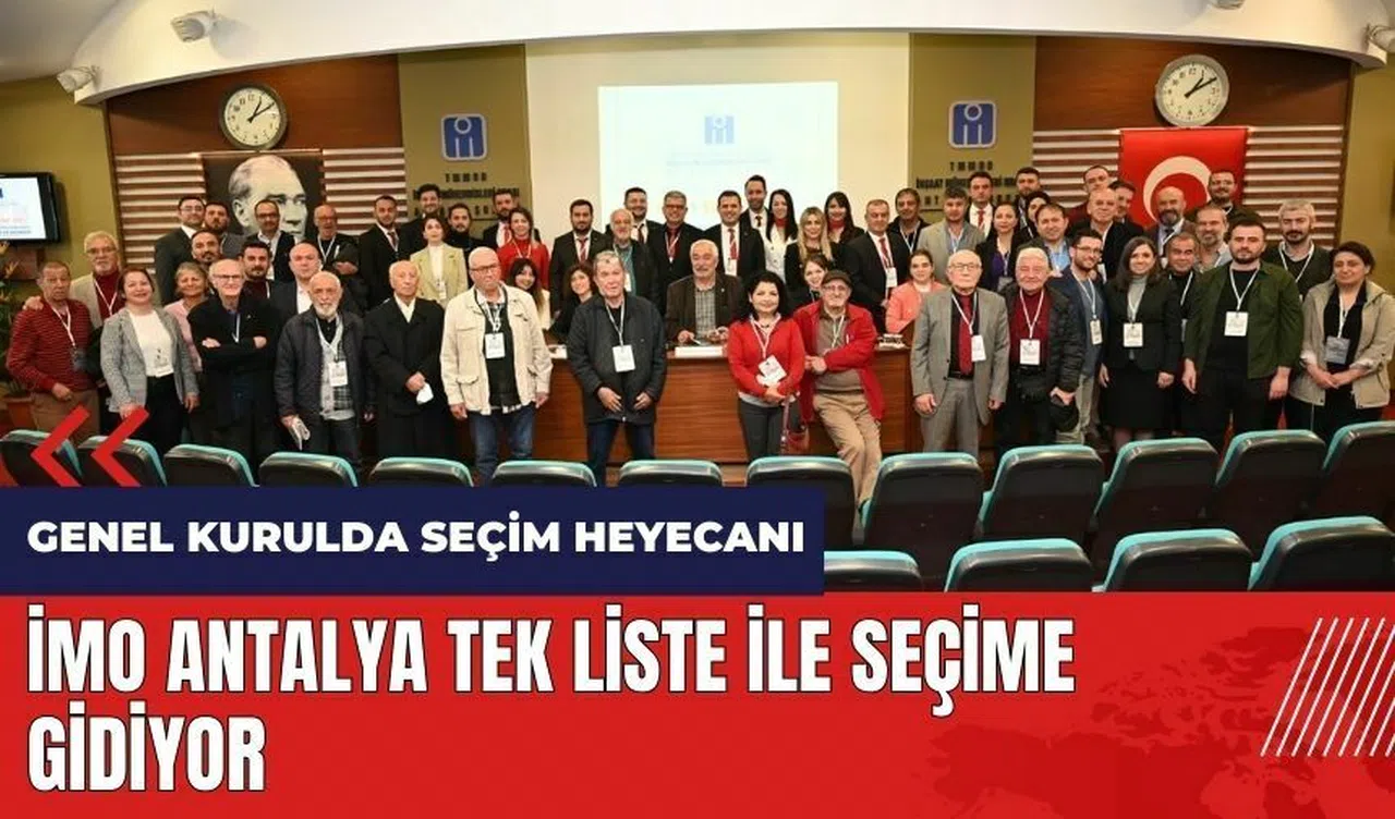 İnşaat Mühendisleri Odası (İMO) Antalya Şubesi 19. Dönem Genel Kurulu’na tek liste ile gitti. Adem Tolunay Anadolu Lisesi’nde yapılan seçimlerde İMO Antalya Şube Başkanı Mehmet Soner Akdoğan yeniden aday olurken, Akdoğan'ın listesinde Ali Erman Aydın, Engin Yergök, İbrahim Koç, Ayşenur Kalaycı, Halil Can Çivik ve Ebru Elmas yer aldı.