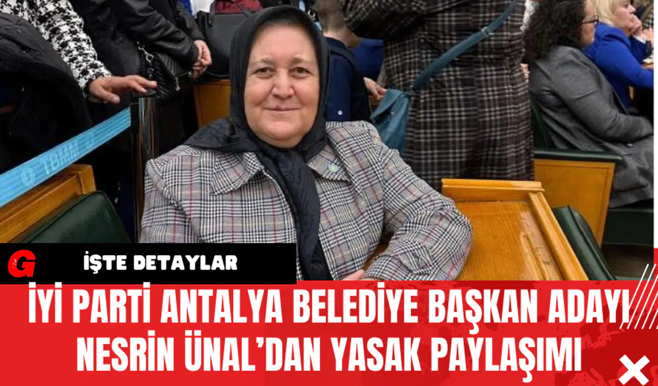 İYİ Parti Antalya Belediye Başkan adayı Dr. Nesrin Ünal, sosyal medya üzerinden paylaşımda bulundu. Ünal, seçim yasaklarına dikkat çekerek, billboardlara siyasi parti logosu ve adaylık ibarelerinin yazılmasının yasak olduğunu belirtti.