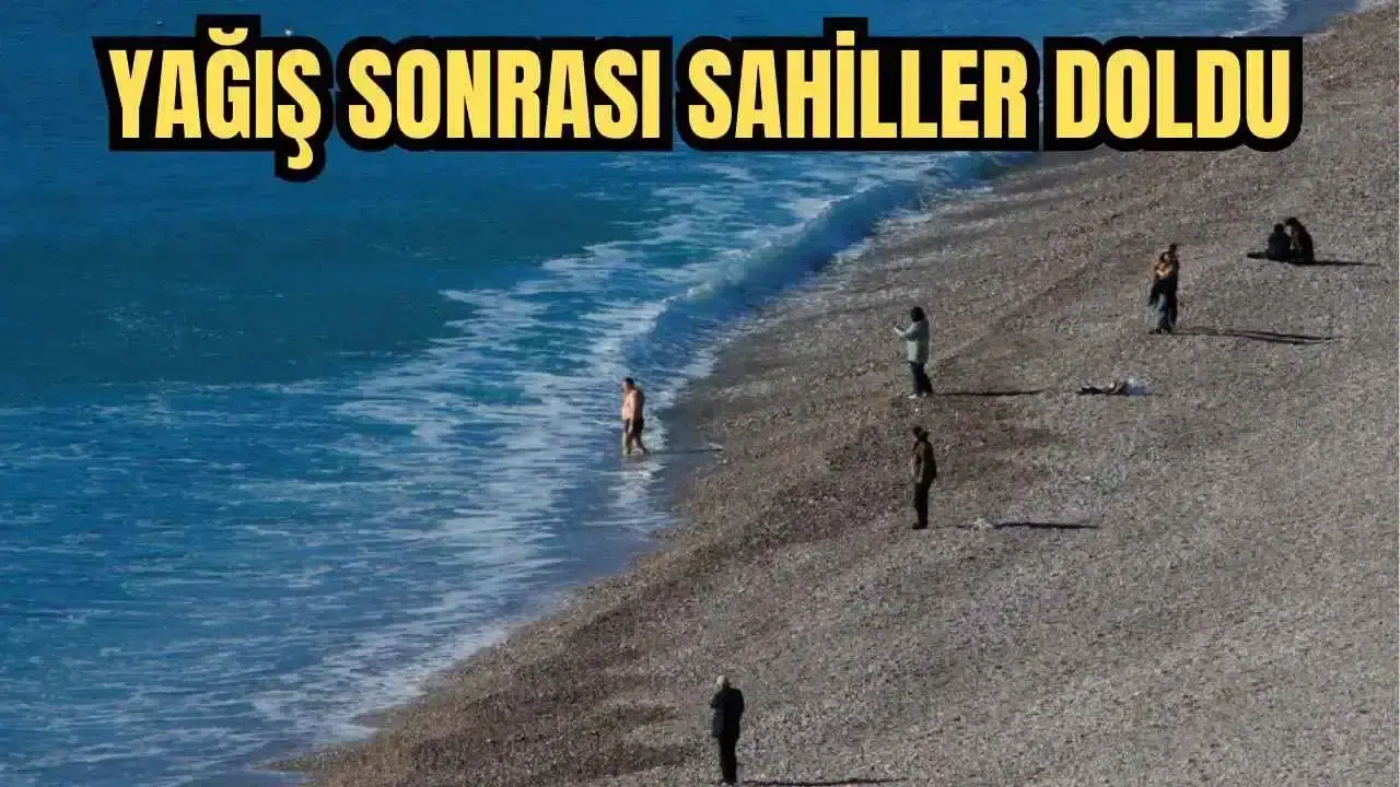 Hava sıcaklığının 18 derece civarında ölçüldüğü kentte, yabancı turistler kış mevsimine rağmen denize girmeyi tercih etti. Sahilde yürüyüş yapanlar ve fotoğraf çekenler de dikkat çekti.