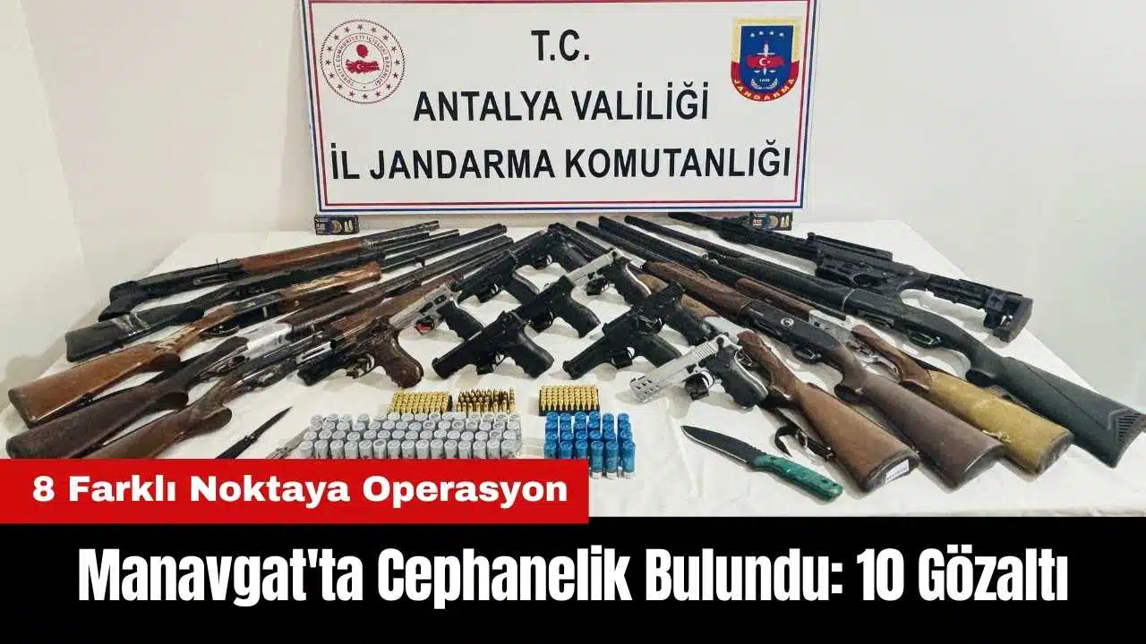 Antalya’nın Manavgat ilçesinde jandarma tarafından düzenlenen operasyonda ruhsatsız 10 tabanca, 10 av tüfeği ve sayıda mühimmat ele geçirilirken, 10 şüpheli hakkında adli işlem başlatıldı.