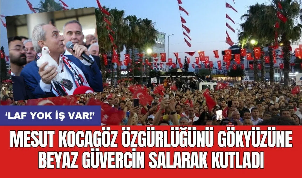 Saat 20.00 sularında Kepez Belediyesi'ne eşiyle birlikte gelen Başkan Mesut Kocagöz, yanında getirdiği güvercinleri özgür bırakarak, şu ifadelere yer verdi: “Ayrılık bitti, merhamet dilenmedik adalet diledik. Bu yola insanlara hizmet için çıktık ve orada teleferik kazasında sabahlara kadar kriz yönettik, belki orada olmasam akıllarına gelmeyecektim. Talihsiz bir yol kazası yaşadık diye düşünüyorum. Bu saatten sonra 650 bin nüfuslu Kepez'imiz bizden hizmet bekliyor, yarından itibaren laf yok iş var. Tutuklu kaldığım sırada bir dörtlük yazdım; 'Çaresizlik içerisinde çare arıyorsan, adalet içinde adaletsizlik yaşıyorsan, dışarıdaki sevdiklerin sana kavuşamıyorsa sen onlara kavuşamıyorsan bittin be arkadaş.' İşte geldim. Hiç kimseyi incitmeden geldim, ne ezen ne ezilen hakça bir düzen için geldim.”