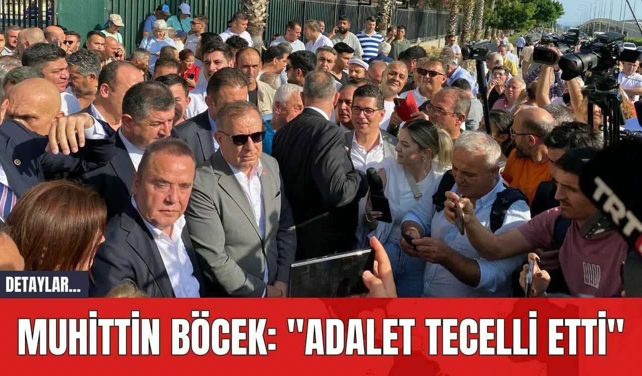 Mahkeme önünde basın açıklaması yapan Muhittin Böcek, "Öncelikle değerli Mesut kardeşime geçmiş olsun dileklerimi iletiyorum. Adalet tecelli etti. Bundan sonra da yarın Antalya Büyükşehir Belediyesi Meclisi’nde Mesut Kocagöz yerini alacak ve meclisimizi onurla, gururla, azimle yönetmeye devam edeceğiz. Buradan cezaevine gitmeyeceğiz. Cezaevine kadar eşlik edecek arkadaşlarımız var. Mesut Kocagöz Kepez Belediyesi’nde ikinci kez makamına oturma fırsatı bulacak" şeklinde konuştu.