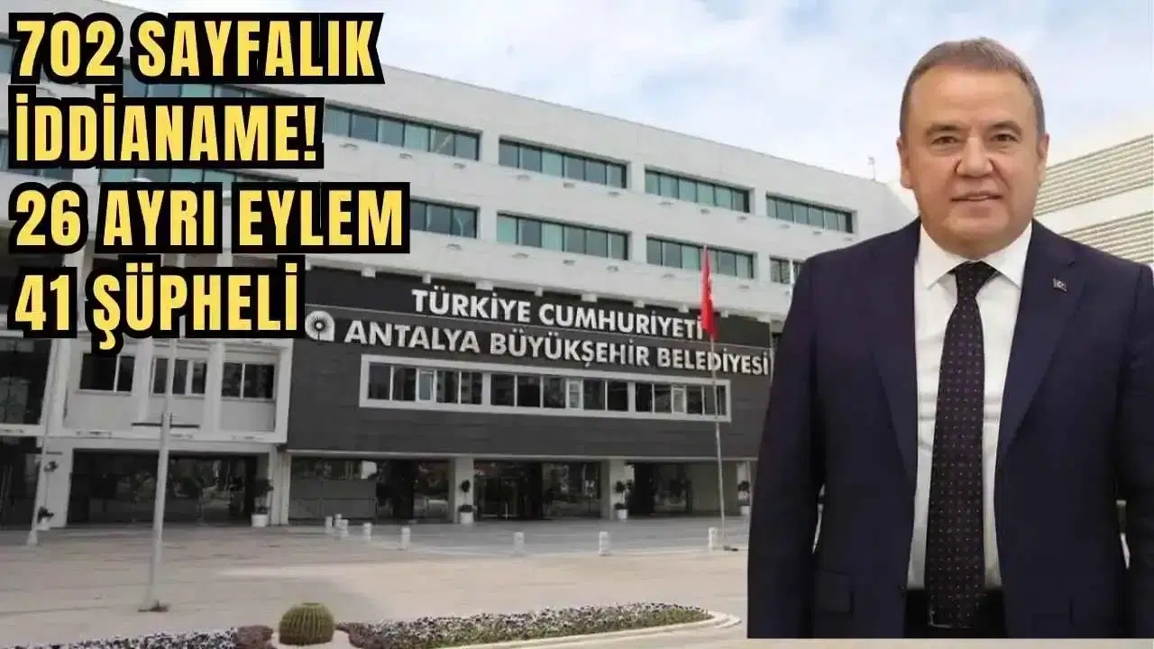 Antalya Cumhuriyet Başsavcılığı tarafından, Antalya Büyükşehir Belediyesi'ne yönelik 5 Temmuz 2025 tarihinde başlatılan "rüşvet ve yolsuzluk" iddiasıyla başlatılan soruşturma tamamlandı. Soruşturma kapsamında tutuklanan Antalya Büyükşehir Belediyesi Başkanlığı görevinden uzaklaştırılan Muhittin Böcek, oğlu Mustafa Gökhan Böcek, eski Antalya İl Emniyet Müdürü İlker Arslan ile Fazlı Ateş ve Mehmet Okan Kaya'nın da aralarında bulunduğu toplam 41 şüpheli hakkında yürütülen soruşturma işlemleri tamamlanarak iddianame hazırlandı. Hazırlanan iddianame kapsamında 26 ayrı eylem hakkında hukuki değerlendirme yapıldığı kaydedildi.