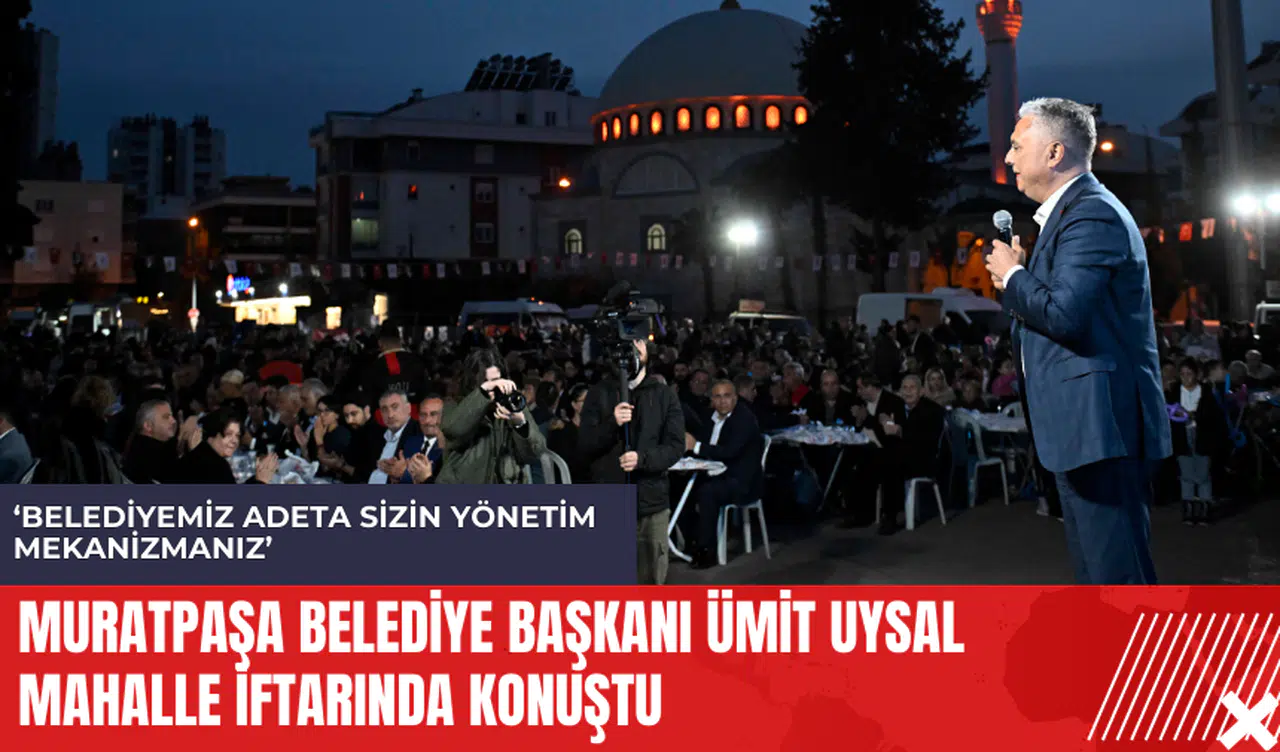 'Muratpaşa’da ki komşuluk, bir maneviyatı beraber teşkil etmek, bir ortamı beraber oluşturmak, bir şehri beraber yaşamak, yaşatmak. Hepinize çok teşekkür ediyorum. Kamu hizmetini alan da bir, veren de bir. Adeta sizin bir yönetim mekanizmanız belediyemiz. Sizler sayesinde barışık, birbirine kenetlenmiş harika bir Muratpaşa nüfusu var. Bu vatanın geleceğini, çocuklarımızın geleceğini, birlikte omuz omuza, kol kola tanzim eden bir anlayışla yolumuza devam ediyoruz.'