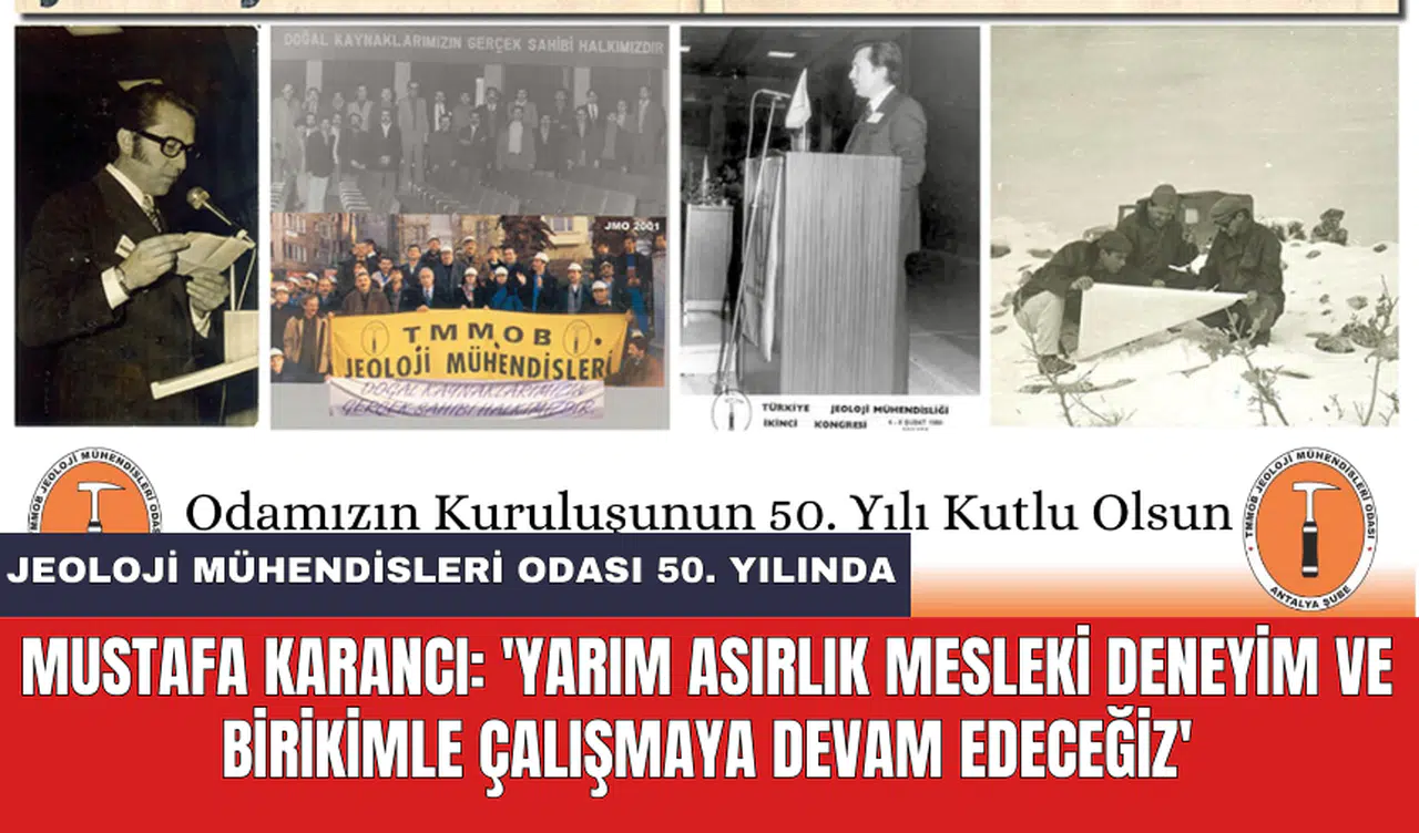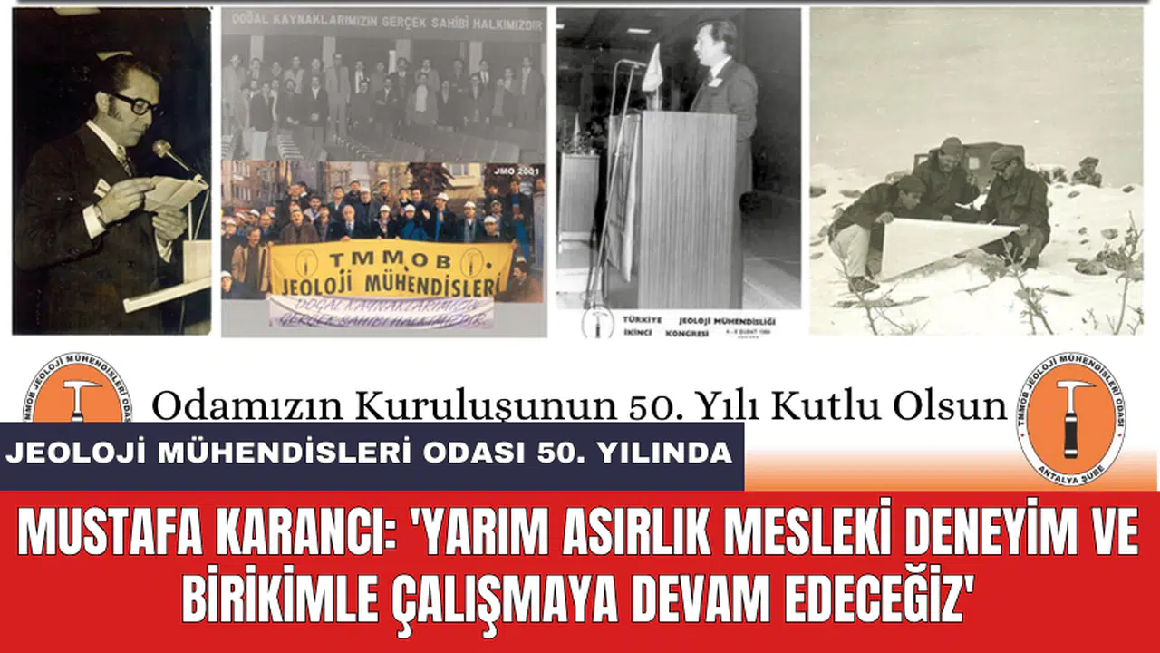 Odamızın kuruluşunun 50. Yılında toplum yararını korumak, meslektaşlarının hak ve çıkarlarını savunmak, mesleki konularda görüş oluşturmak, mesleki gelişime katkı sağlamaya çalışmak, afetlere karşı dirençli şehirleşmenin sağlanması, zemin etütlerinin yerinde denetimi, kaçak sondajların engellenmesi, yer altı ve yüzey sularının korunması, yerel yönetim ve belediyelerde meslektaşlarımızın istihdamın sağlanması, deprem simülasyon tırı, yağmur sularının yer altı suları ile buluşacağı süngerkent projesini, turizme yeni bir destinasyon kazandıracak doğal taş ve tabiat müzesi, jeopark ve daha nicesi ile ilgili talep, istek ve çözüm önerilerimizi söylemeye devam edeceğiz. Bundan kimsenin şüphesi olmasın. Yeter ki dayanışmamızı, birlikteliğimizi güçlü tutalım, bu vesile ile odamızın onurla geldiği 50 yaşını kutluyor, bilimle, emekle, umutla ve inatla nice yılları birlikte yaşamayı diliyor, tüm değerli meslektaşlarıma saygılar sunuyorum.'